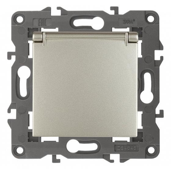 14-2103-04 ЭРА Розетка 2P+E Schuko со шторками с крышкой, 16A-250В, IP20, Эра Elegance, шампань (10/