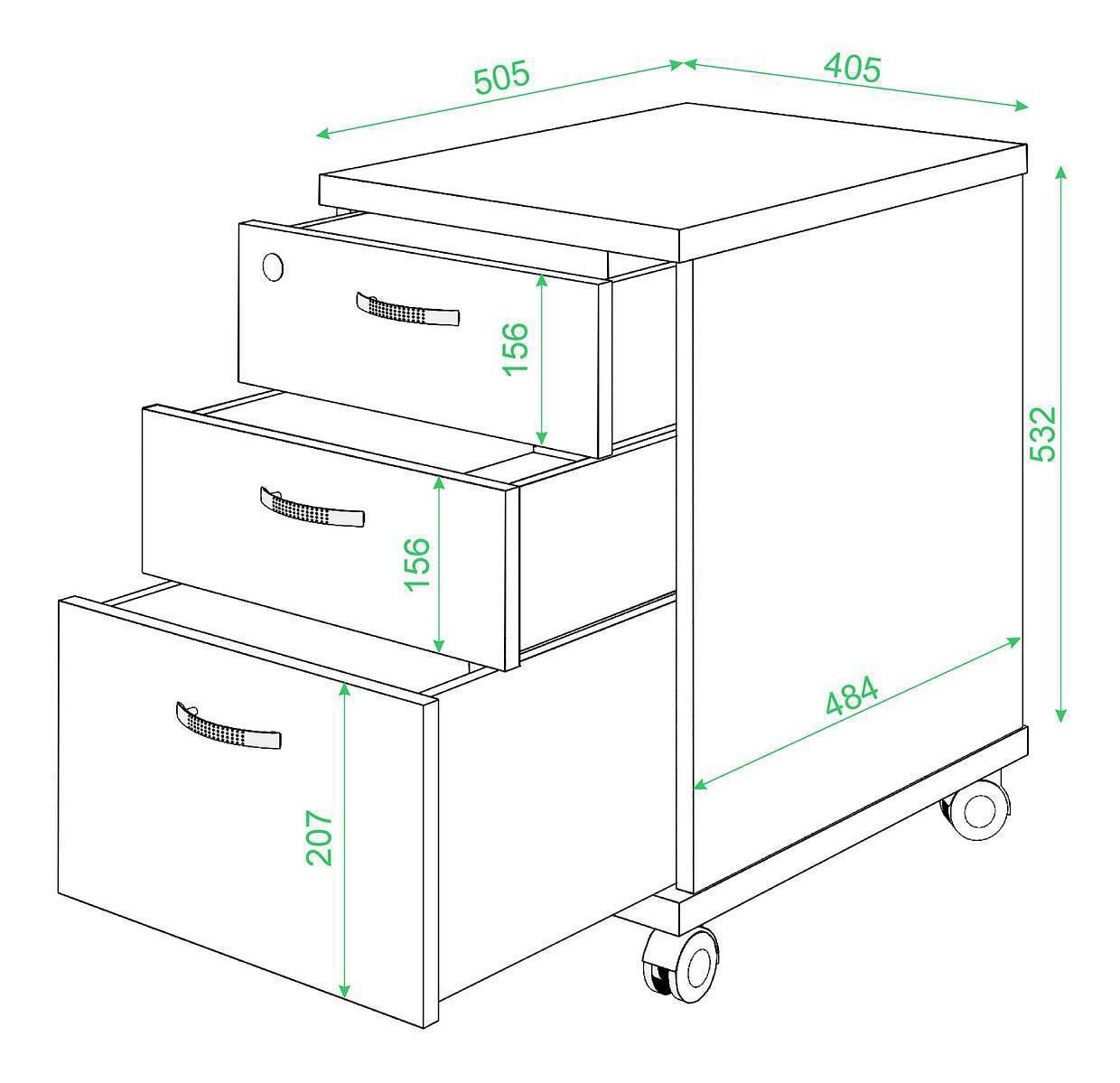 колесики;3 ящика