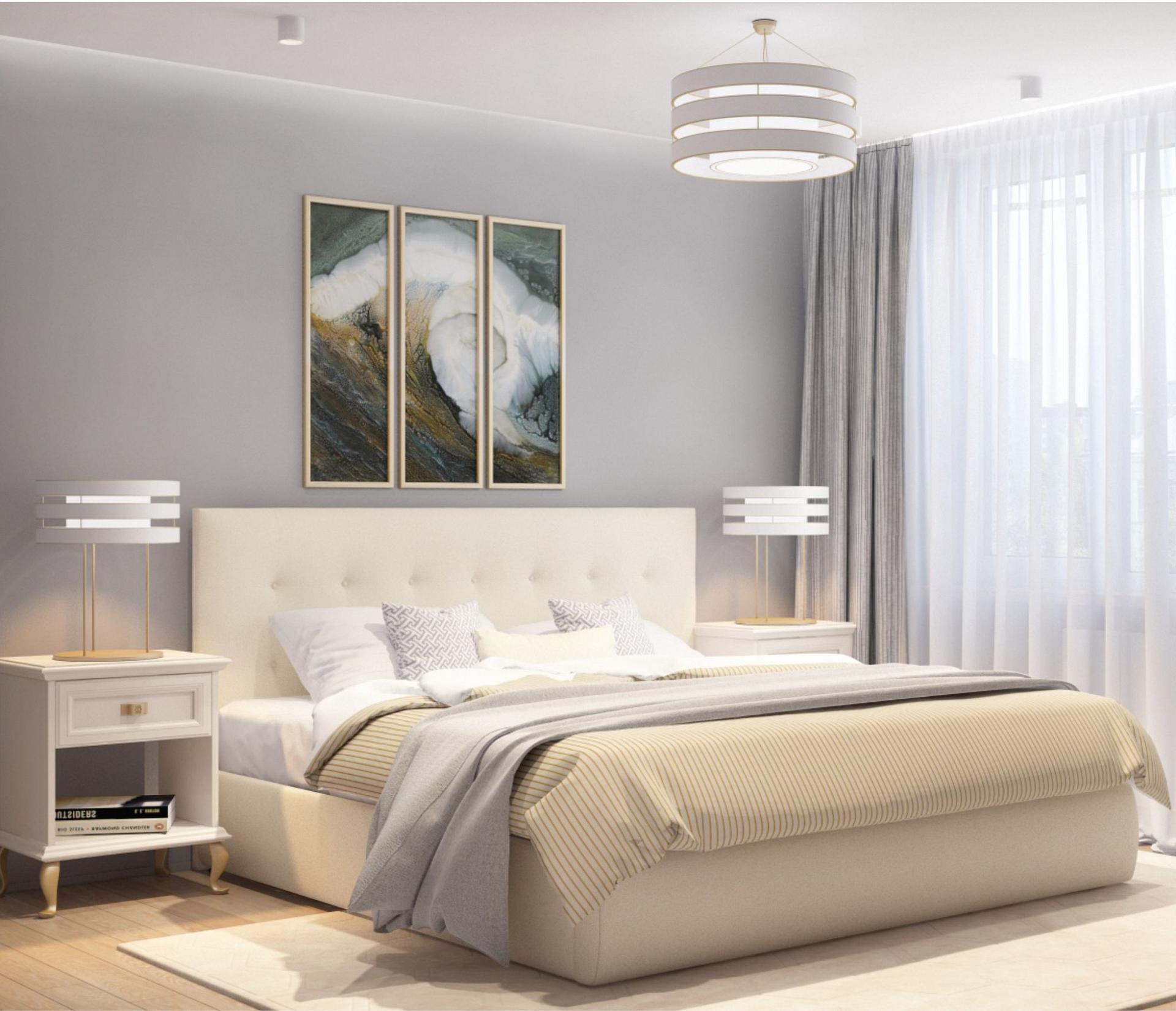 Кровать Селеста с высоким оригинальным изголовьем и ортопедическим основанием имеет рельефную мягкую спинку с неглубокими стяжками, которые придают особую изысканность изголовью.