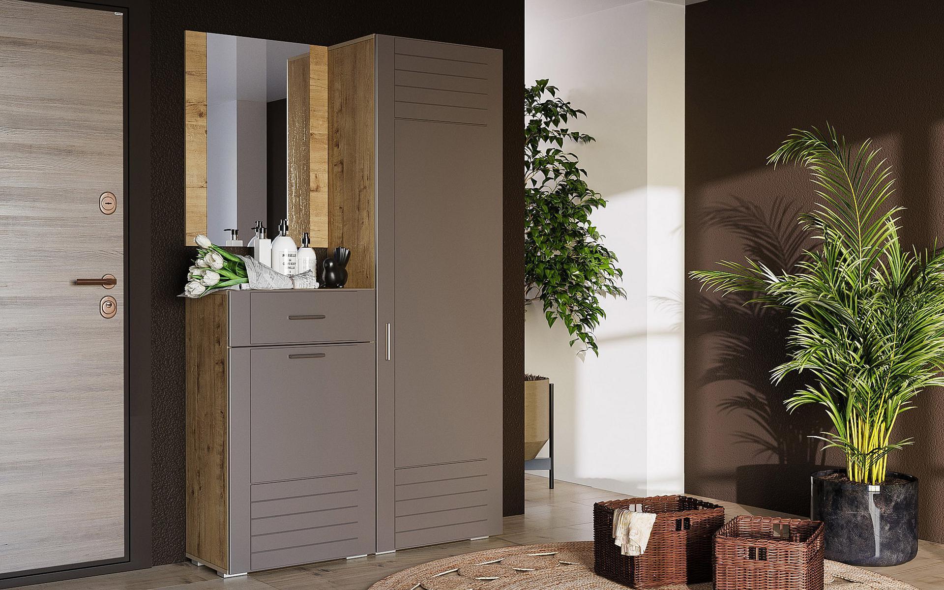 Стенка для прихожей Livorno SLV_Livorno_system_8 создана популярным производителем мебели Сильва. Она входит в серию «Livorno» и изготовлена в соответствии с общепринятыми стандартами качества. Предлагаемая рыночная цена за данную комплектацию составляет 21670 руб. Матовый корпус сделан из износостойкого материала (ЛДСП Е1), отличающегося долговечностью и практичностью, а его оттенок («дуб бунратти») оптимально сочетается с расцветкой и фактурой фасада (МДФ, цвет «софт графит»). Стенка для прихожей Livorno включает в себя следующие компоненты: зеркало настенное: 602x20x804 мм, тумба для обуви: 602x380x1020 мм, шкаф платяной: 602x380x1980 мм. Желаем приятных покупок на нашем сайте!