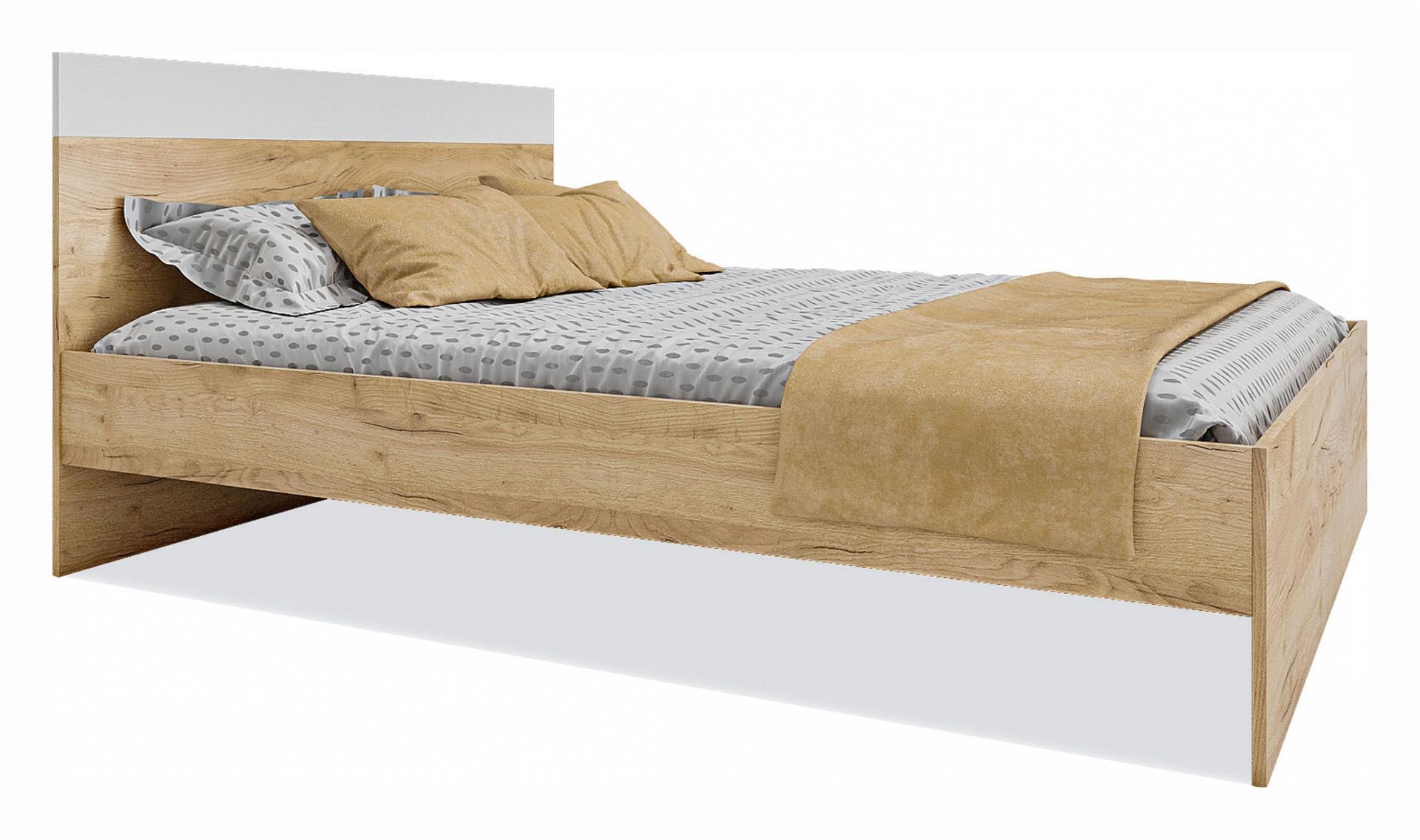 Изголовье кровати выполнено с сочетанием двух текстур – дуб золотой и белый.