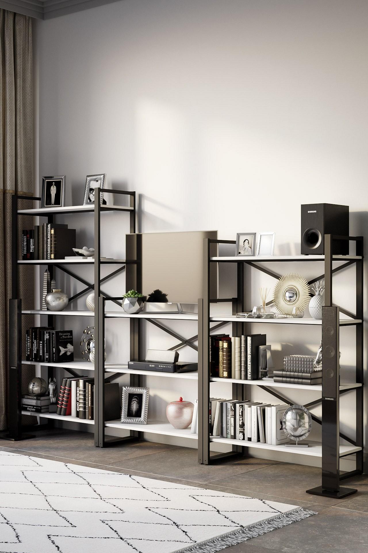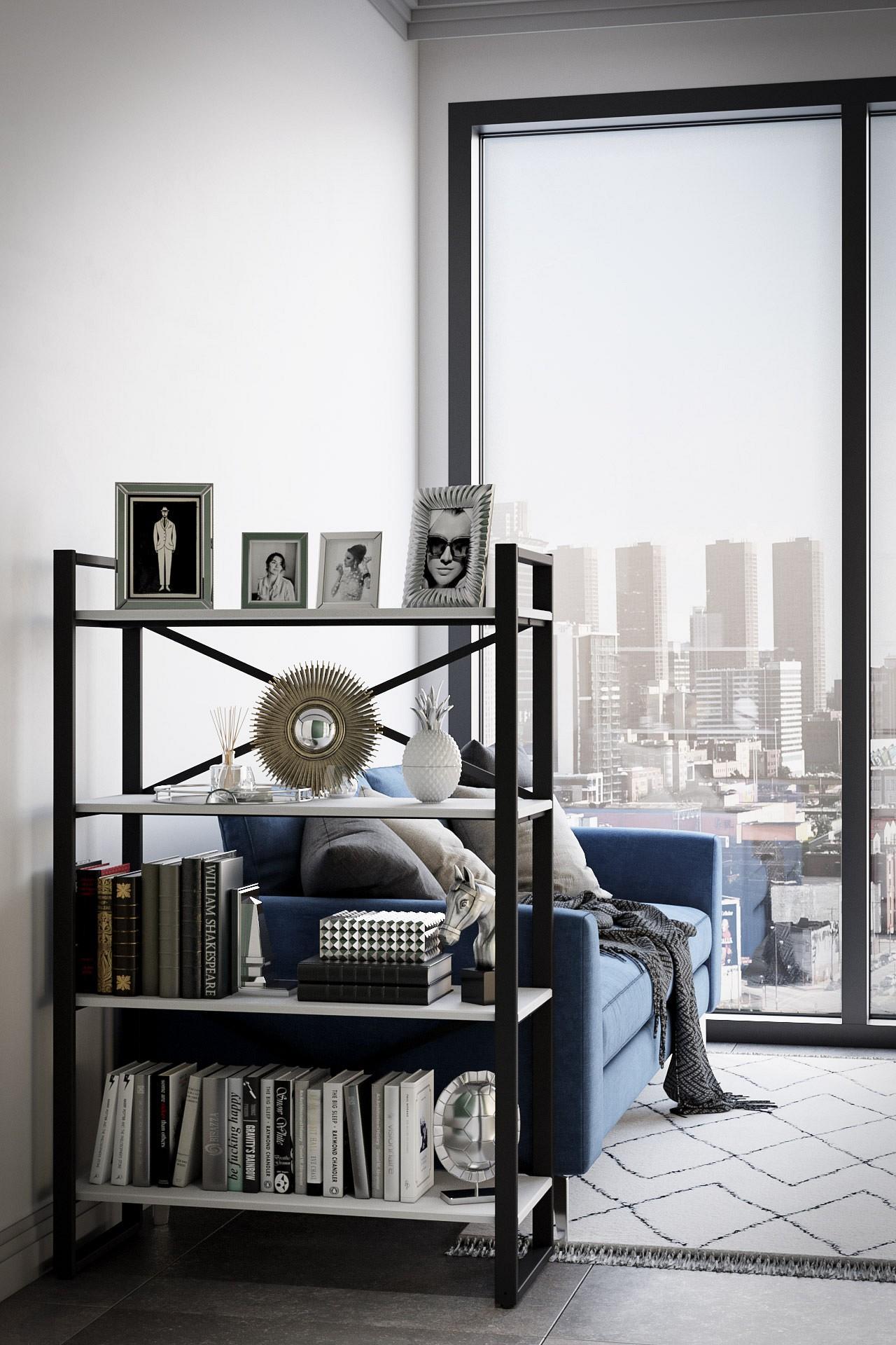 У вас много книг или вы решили интересно обыграть интерьер, украсив его оригинальным декором? Отличным решением будет KLF_3457899701 - стеллаж Хардвиг M, созданный представителями бренда Калифорния в рамках коллекции «Хардвиг M». Благодаря оптимальной конструкции, он займет совсем немного места, при этом в него поместится все необходимое (ширина стеллажа 900 мм, высота 1395 мм, глубина 390 мм). Стеллаж изготовлен из современных материалов (ЛМДФ, металл) и имеет корпус выигрышного оттенка (белый, черный). Производитель предлагает за цену 20020 руб. стеллаж, в комплекте с которым идут 4 полки.