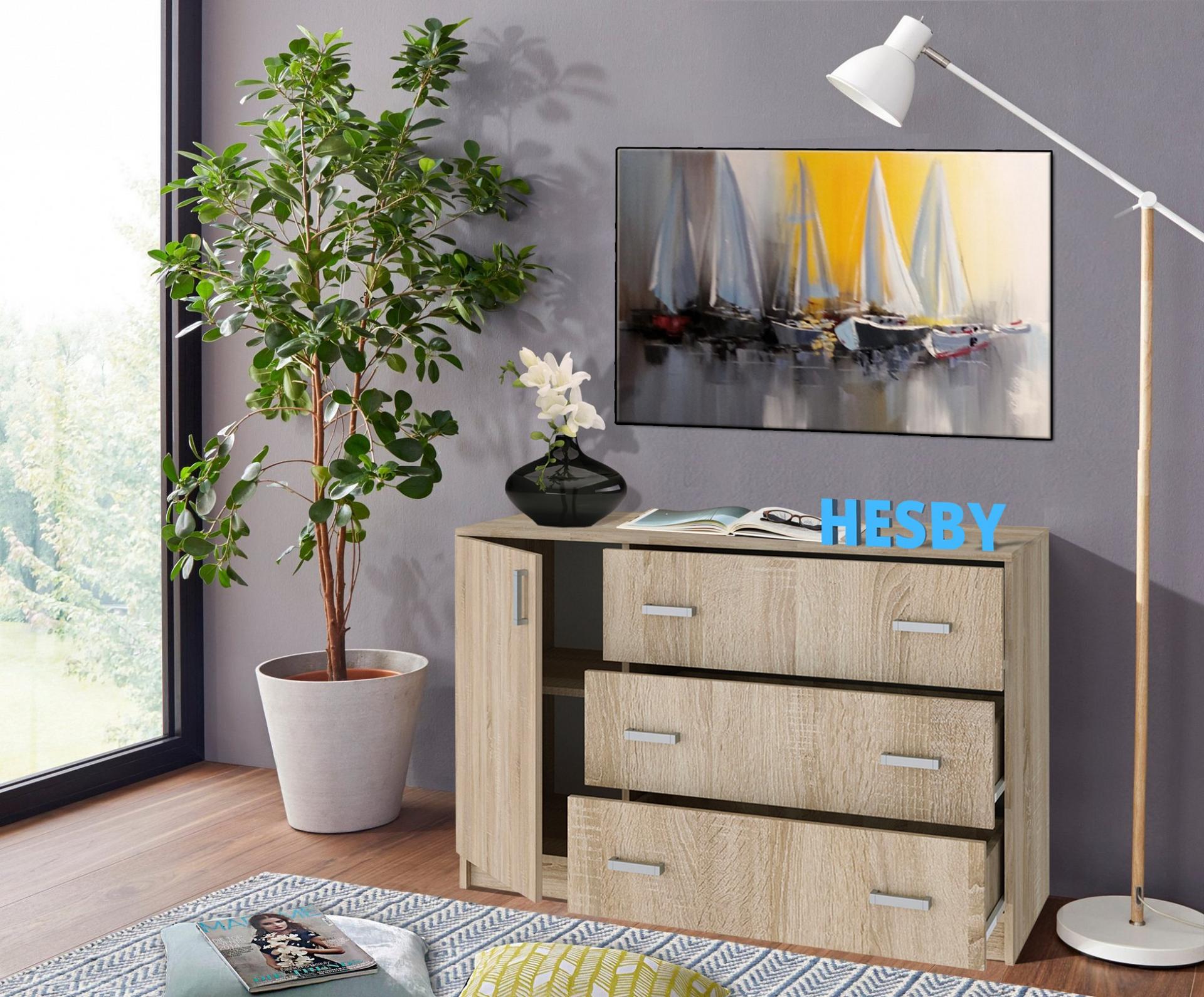 Мелочи создают общее настроение в интерьере, особенно, если лежат не на своем месте. Справиться с этой задачей поможет комод Майями 1200 HSBN_10021, созданный актуальным брендом Hesby. Данная модель входит в серию «Майями» и стоит 6750 руб. Производитель предлагает следующую комплектацию: 1 дверца, 1 полка, 3 ящика. Матовый корпус выполнен в благородном оттенке «дуб сонома», тонко перекликающимся с расцветкой фасада (дуб сонома), изготовленного из качественного сырья (ЛДСП Е1). Благодаря оптимальным габаритам комода (изделие длиной 774 мм, шириной 1182 мм и выступом 440 мм), вы сможете расположить в нем все необходимое, при этом сохранив полезное пространство в помещении.