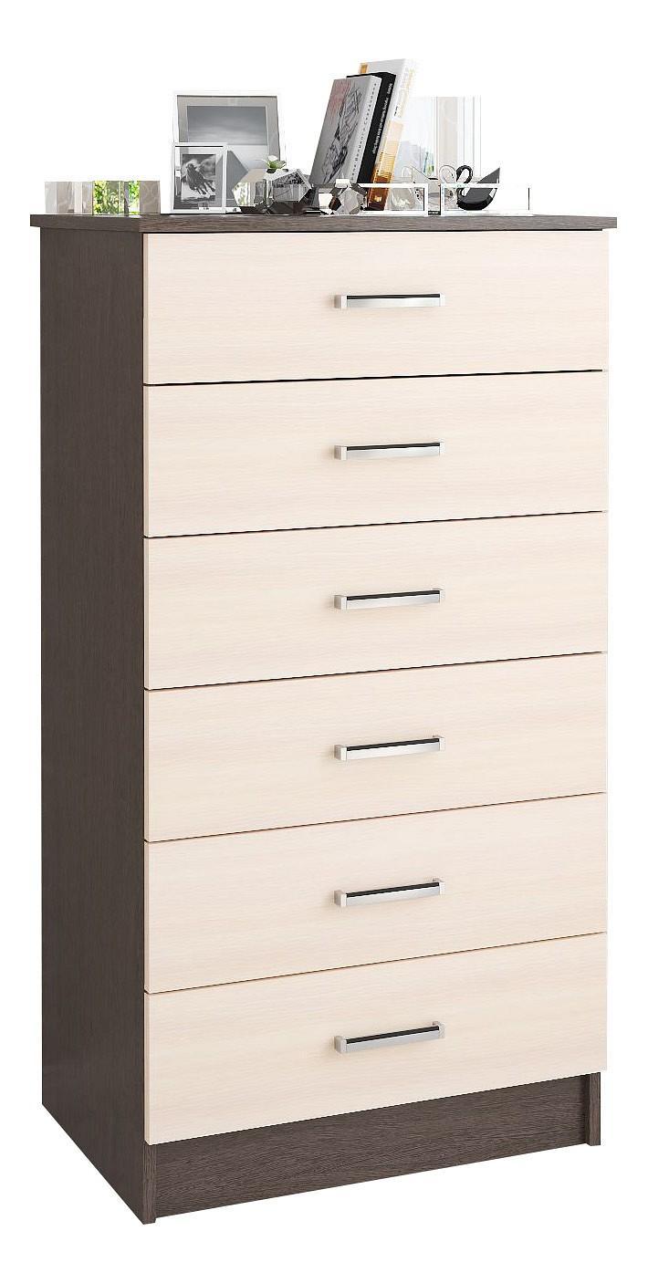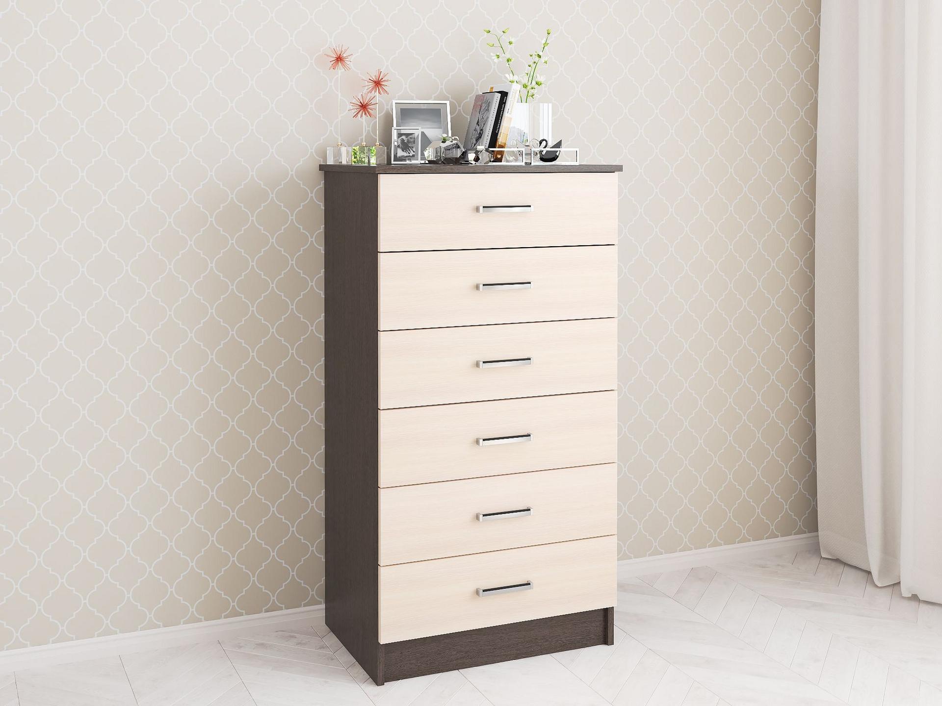 Мелочи создают общее настроение в интерьере, особенно, если лежат не на своих местах. Справиться с этой задачей поможет комод Катрин-4 TKS_00-00003851, сделанный популярным брендом Тэкс. Данная модель входит в серию «Катрин-4» и стоит 6239 руб. Производитель предлагает следующую комплектацию: 6 ящиков. Матовый корпус изготовлен в благородном оттенке «венге», тонко перекликающимся с расцветкой фасада (дуб молочный), изготовленного из качественного сырья (ЛДСП Е1). Благодаря оптимальным размерам комода (изделие длиной 1160 мм, шириной 620 мм и выступом 425 мм), вы сможете расположить в нем все необходимое, при этом сохранив полезное пространство в помещении.