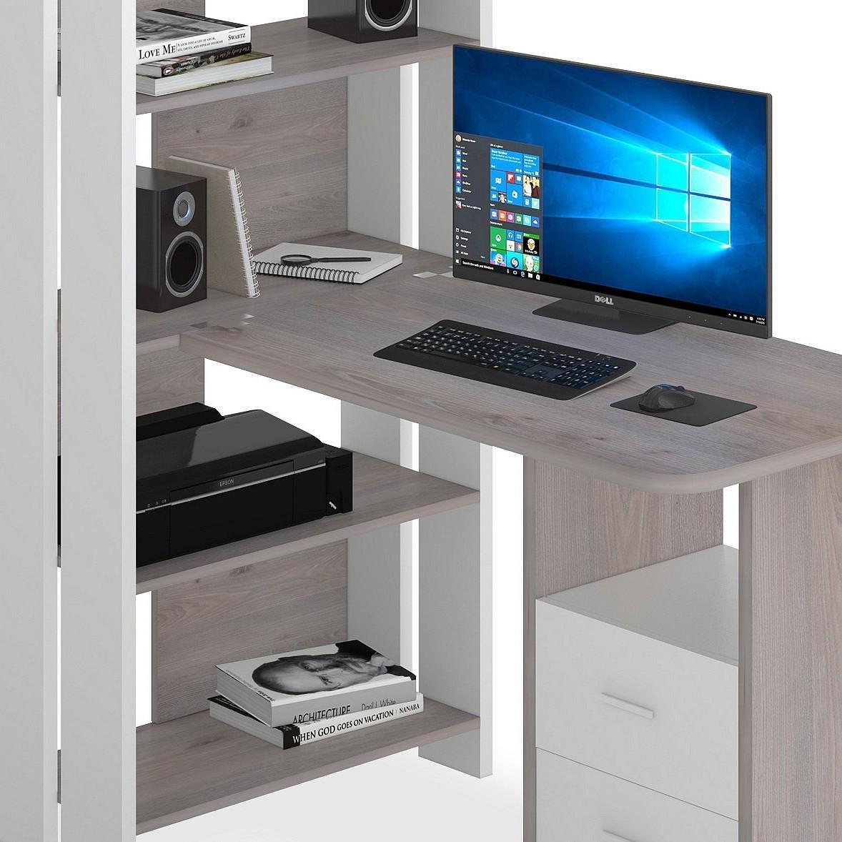 Дети делают на нем домашние задания, взрослые с его помощью зарабатывают деньги – компьютер актуален для всех. Стол компьютерный Домино Lite СТЛ-ОВ+С100Р MER_STL-OV-S100RPryam_BEN – то, что нужно, чтобы создать полноценное рабочее пространство, которое позволит разместиться с максимальным комфортом. Данная модель создана компанией 2735048, серия «Домино Lite», на продукцию предоставляется гарантия (12 мес.). Матовый корпус сделан из долговечного и практичного материала (ЛДСП Е1) и прекрасно впишется в любой интерьер благодаря выигрышному оттенку (белый, нельсон). Столешница, толщина которой составляет мм (материал столешницы), имеет матовый верх, при этом общие габариты компьютерного стола составляют 1322 мм в ширину и 1520 мм в высоту. Производитель также включил в комплект стеллаж: 4 полки,, тумбочка: 2 ящика. Купить Стол компьютерный Домино Lite СТЛ-ОВ+С100Р вы можете на нашем сайте за 11290 руб.
