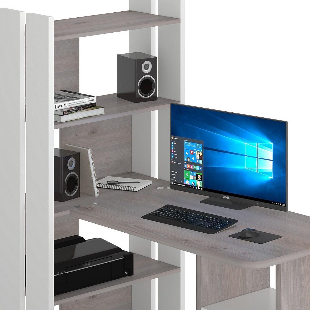 Компьютер давно стал частью нашей жизни. Стол компьютерный Домино Lite СТЛ-ОВ+С100Р MER_STL-OV-S100RPryam_BEN – то, что нужно, чтобы создать полноценное рабочее место, которое позволит разместиться с максимальным комфортом. Данная модель создана брендом 2735048, серия «Домино Lite», на товар предоставляется гарантия (12 мес.). Матовый корпус сделан из долговечного и практичного материала (ЛДСП Е1) и прекрасно впишется в любой интерьер благодаря выигрышному оттенку (белый, нельсон). Столешница, толщина которой составляет мм (материал столешницы), имеет матовый верх, при этом общие габариты компьютерного стола составляют 1322 мм в ширину и 1520 мм в высоту. Производитель также включил в комплект стеллаж: 4 полки,, тумбочка: 2 ящика. Купить Стол компьютерный Домино Lite СТЛ-ОВ+С100Р вы можете на нашем сайте за 11290 руб.
