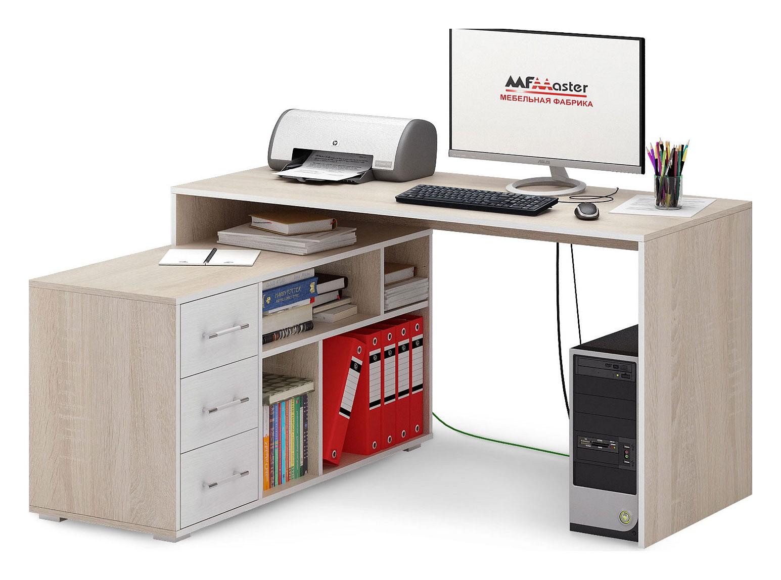 Работа, учеба или чтение – Стол письменный Краст-2 MAS_MST-USK-02-R-16DSB, созданный брендом 2735035, отлично подойдет для реализации любых задач. Эта модель входит в серию «Краст» и способен подстроиться под нужды каждого члена семьи. Благодаря оптимальным размерам изделия (1400Х1200Х750 мм) вы сможете с комфортом заниматься любимыми и важными делами. Базовая комплектация включает в себя непосредственно письменный стол, тумба: 1 полка, 3 ящика. Для изготовления корпуса был выбран ЛДСП Е1 в оттенке дуб сонома, завершает дизайн матовый верхний слой, гармонично перекликающийся со столешницей. Купить данную модель вы можете по привлекательной цене, равной 10899 руб.