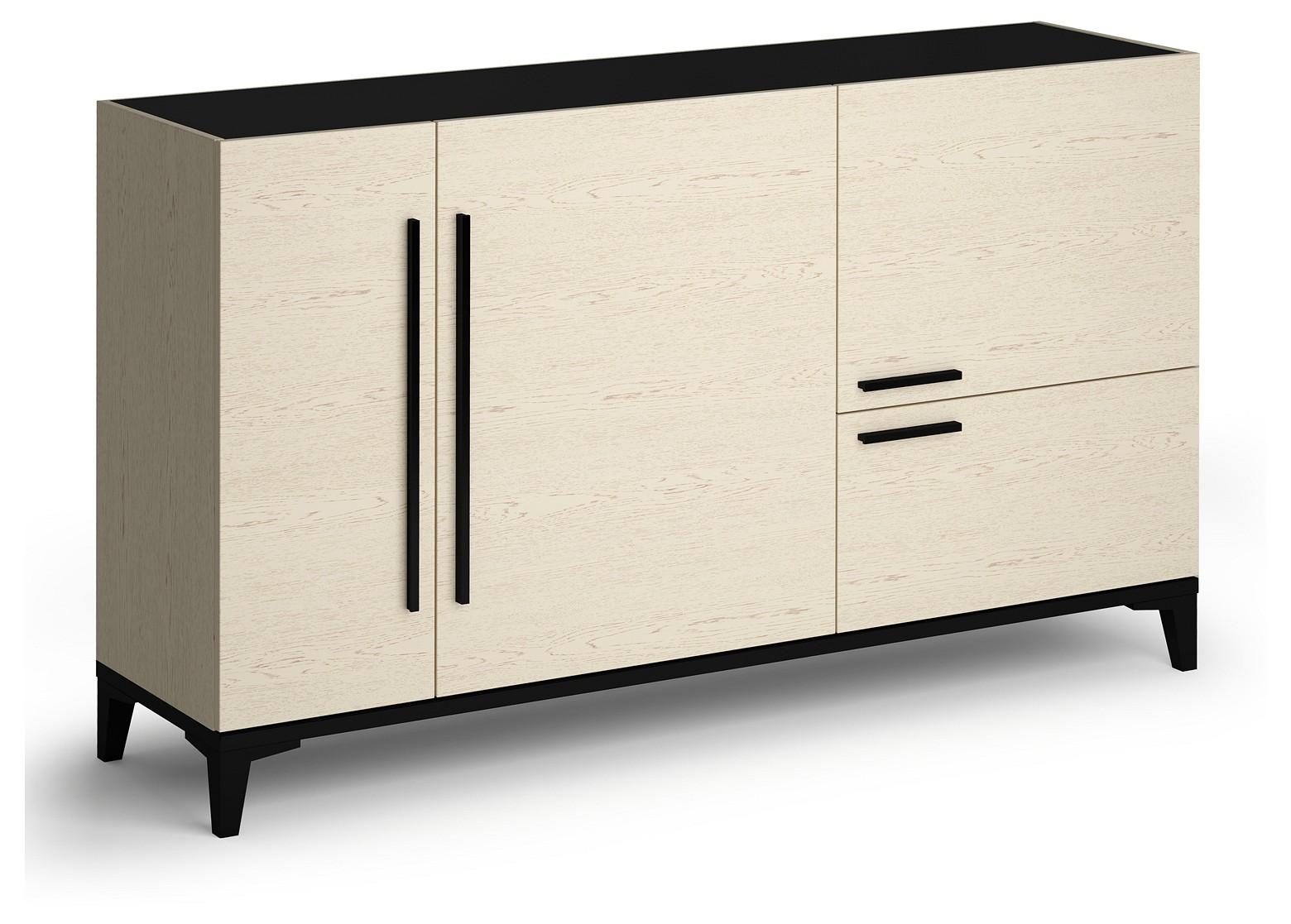 Дно тумбы выполнено из ЛДСП 25 мм с кромкой черного цвета под цвет высоких опор.