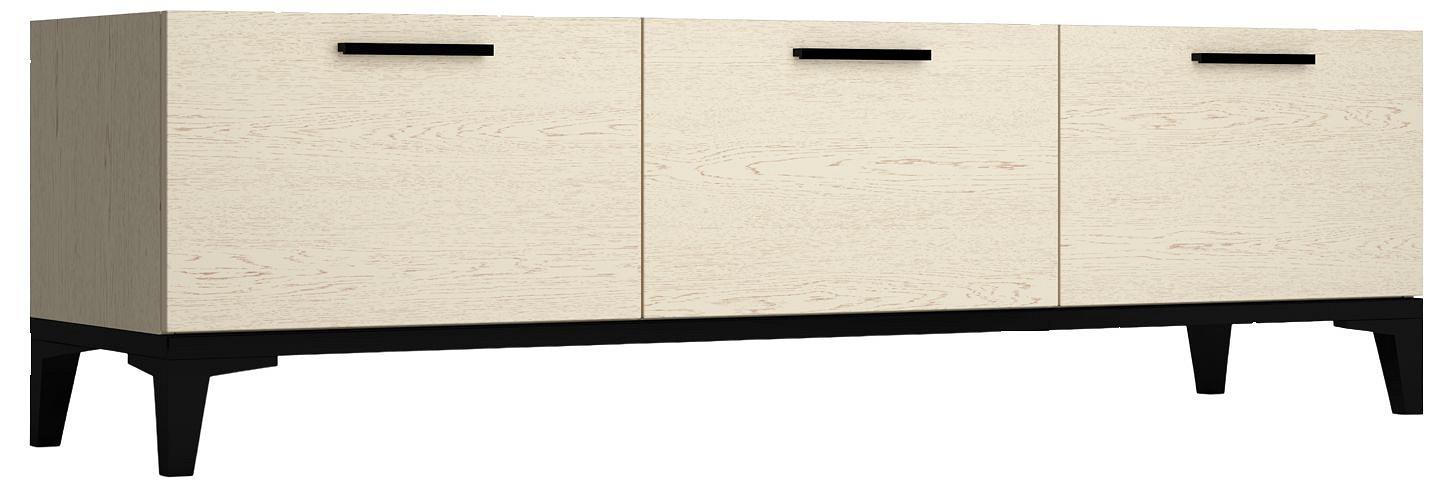 В конструкции тумбы 3 ниши для хранения всевозможных вещей и аппаратуры, а габариты изделия удобны для размещения телевизора с большой диагональю. Дверцы открываются при помощи надежных газлифтов.