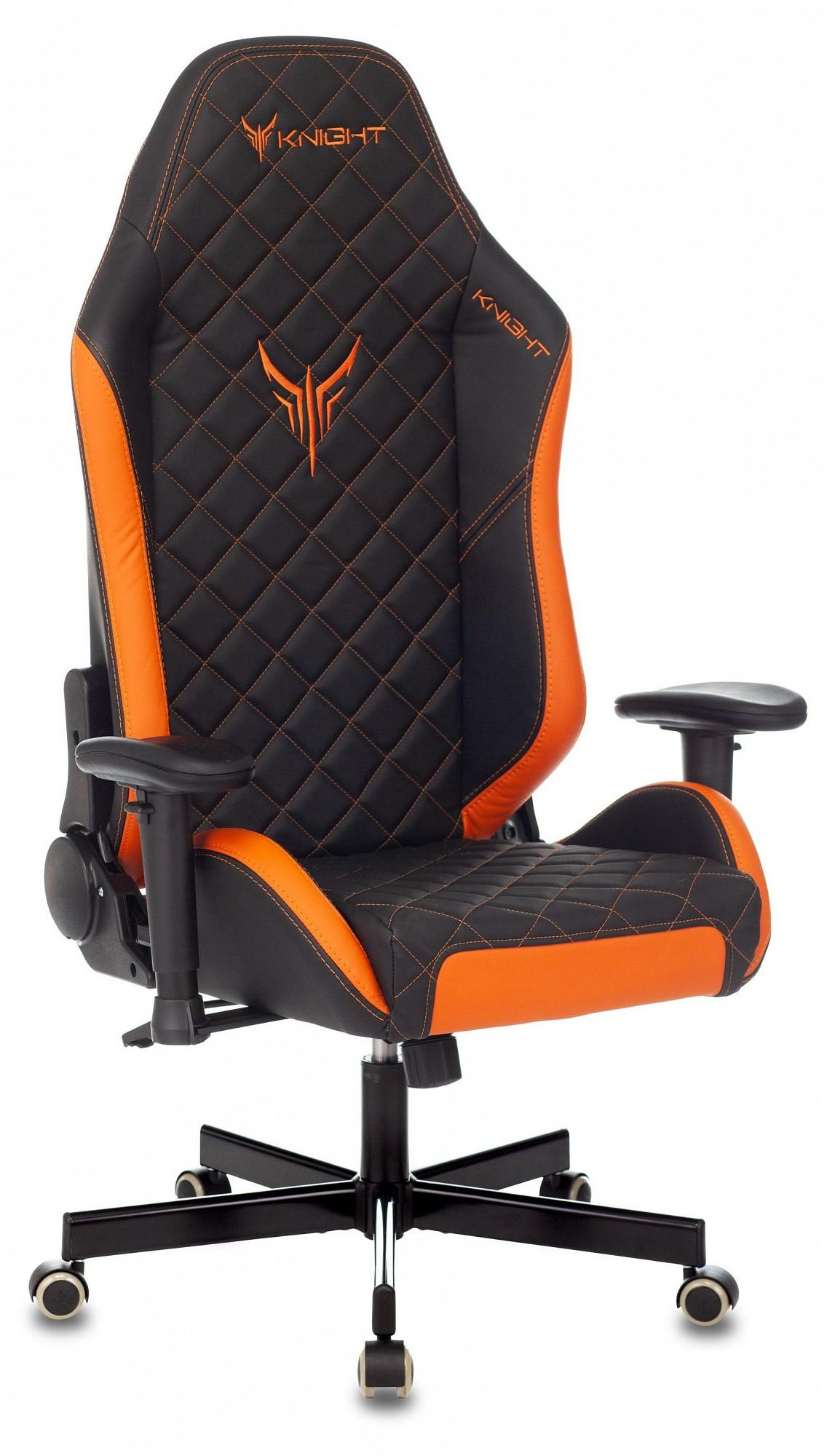 Геймерское кресло Knight Explore, оранжевый, черный, экокожа премиальная