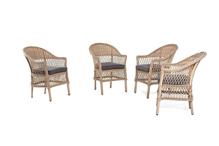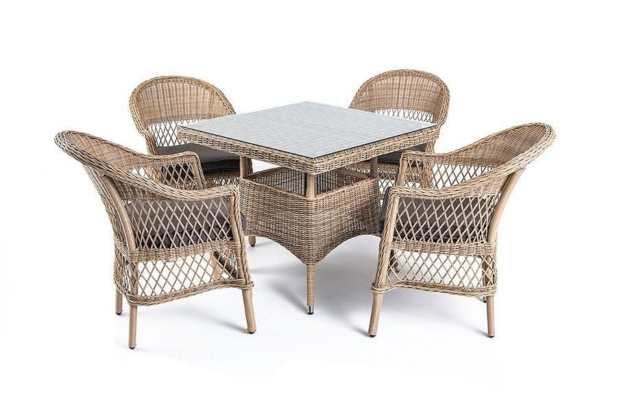 Подушки выполнены из водостойкой полиэфирной ткани для защиты мебели от дождя и солнца. Съемные чехлы.