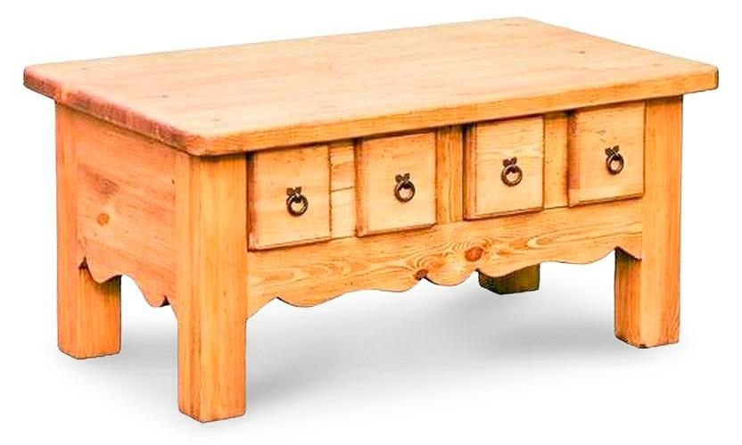 Стильный и оригинальный журнальный столик Монтана обязательно станет ярким и оригинальным акцентом в вашей гостиной. Этот стол из натурального дерева имеет два выдвижных ящика. Каждый из ящиков имеет фальшь-панель, имитирующую два выдвижных ящика вместо одного.