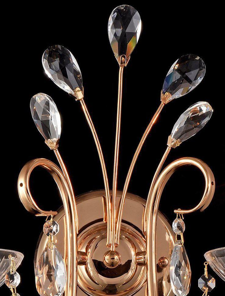 ХЛОЯ. Плавные изгибы рожков бра «ХЛОЯ» украшены каскадом хрустальных нитей и увенчаны чашами из тончайшего резного хрусталя. Верхняя часть, как коронованная особа сияет лепестками на изящных золотых стеблях. Неповторимый блеск модели, металл цвета французского золота и ее невесомые формы в полной мере смогут подчеркнуть богатство вашего вкуса.