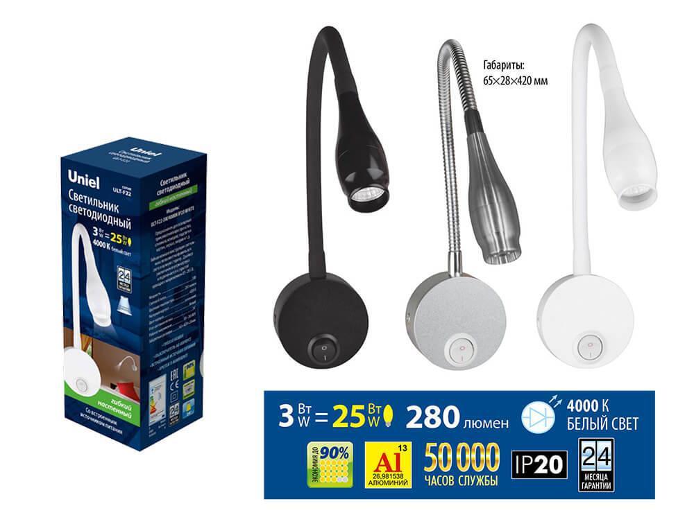Бра Uniel ULT-F22-3W/4000K IP20 Black UL-00004240