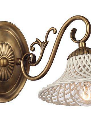 АДОНИС. Оригинально сочетаются в данной модели воздушные плетеные плафоны белого цвета и классической формы основания бронзы. Соединяющим дополнением по праву можно считать массивную деталь из керамики округлой формы в центре люстры.