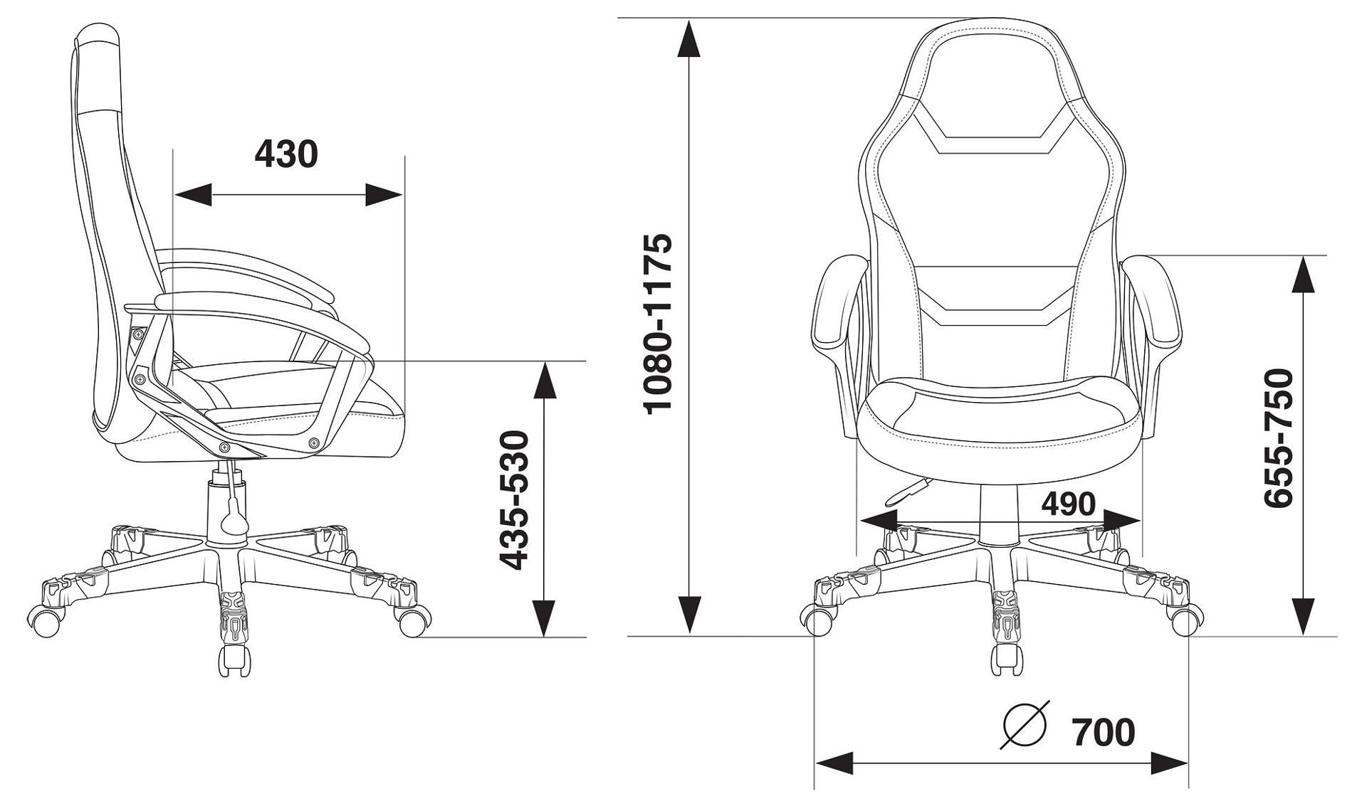 Крестовина пластиковая с цветными накладками под цвет чехла. Материал обивки: ткань с вставками из искусственной кожи.