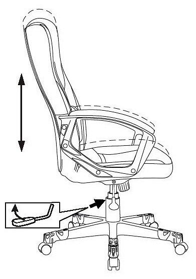 Регулировка высоты - газлифт. Пластиковые подлокотники с мягкими накладками из искусственной кожи.