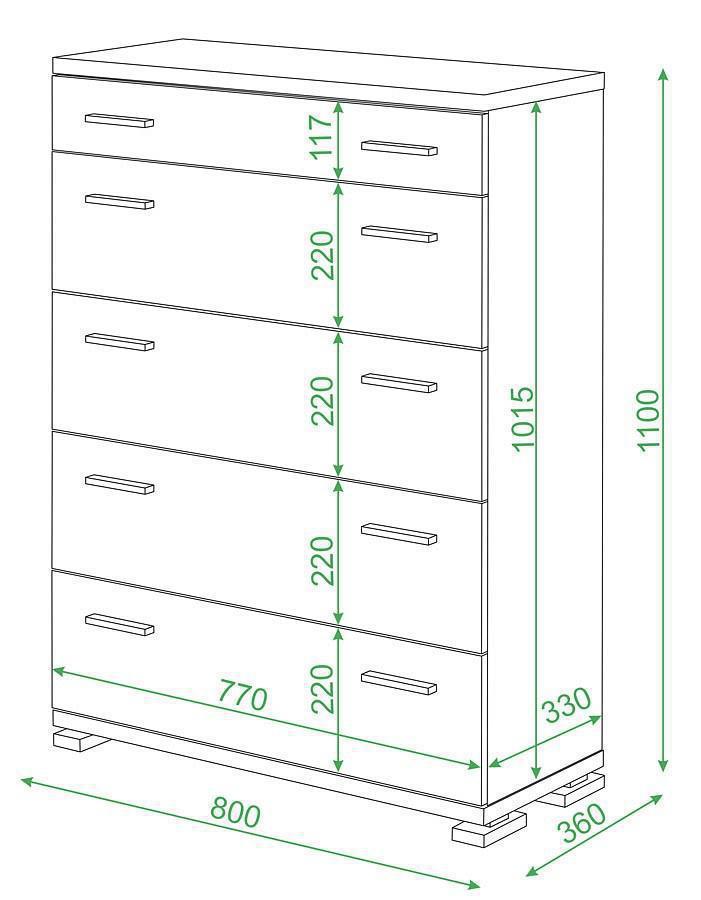 В комоде 4 больших ящика и 1 маленький для мелочей