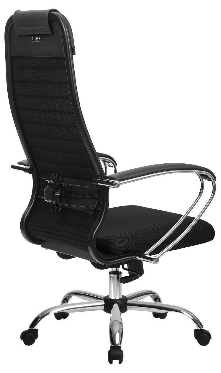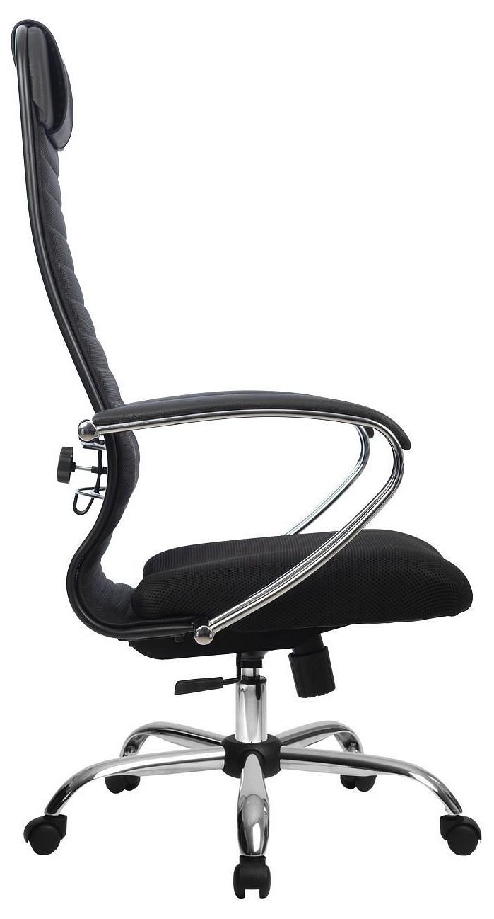 Подлокотники - стальные классические, покрытые зеркальным хромом. Обивка накладок - экокожа.