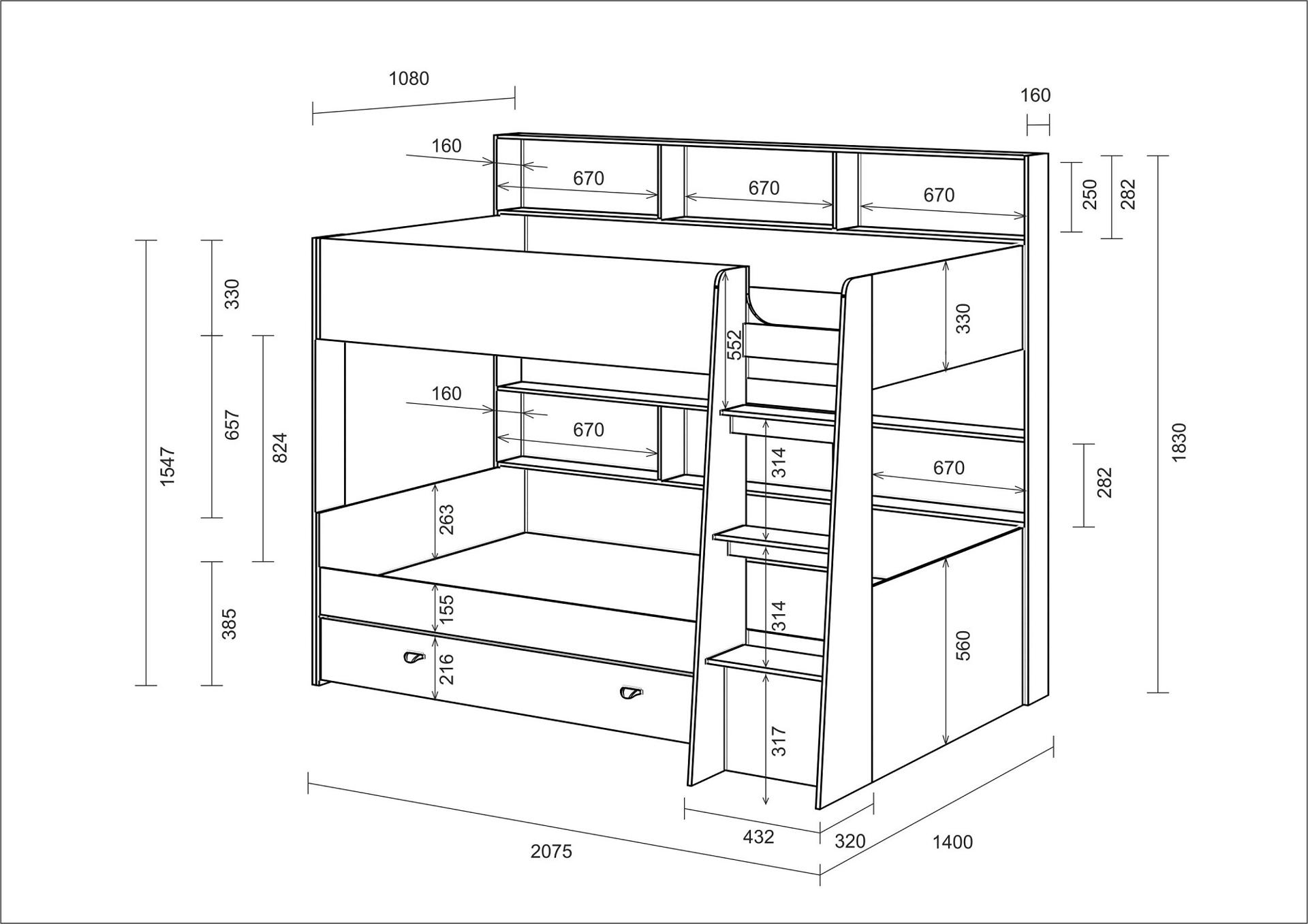 Кровать произведена из экологически чистой ламинированной плиты, используется немецкая фурнитура. Конструкция практичная и крепкая. Безопасность использования обеспечивается высоким защитным бортиком и удобной лестницей не имеющей аналогов на рынке.