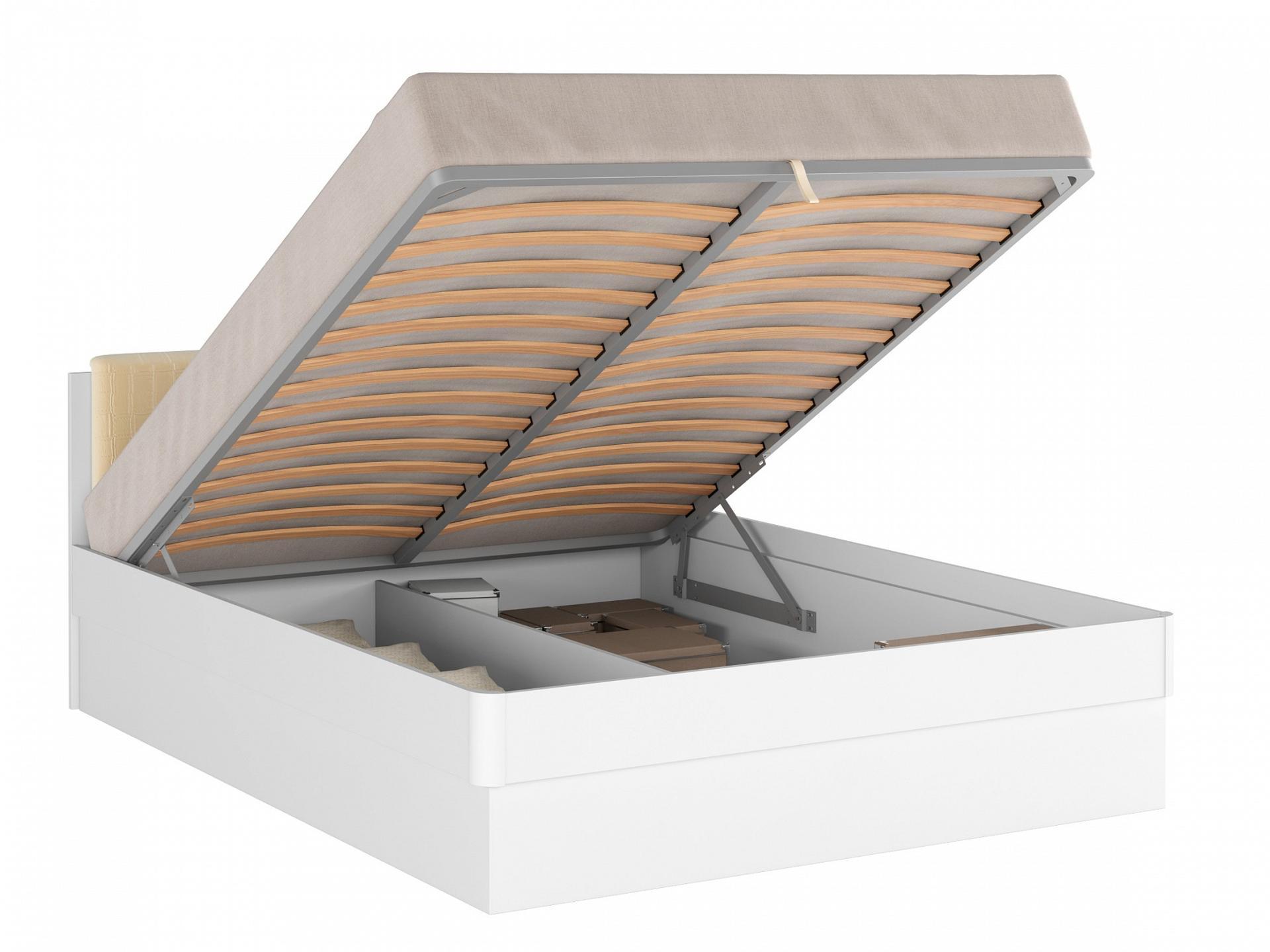 Удобный механизм поднимает ортопедическое основание с матрасом под углом более 45 градусов, и предоставляет полный доступ ко всему внутреннему пространству кровати, в котором можно разместить постельные принадлежности. На изголовье - накладка из износостойкой итальянской винилискожи на изголовье.