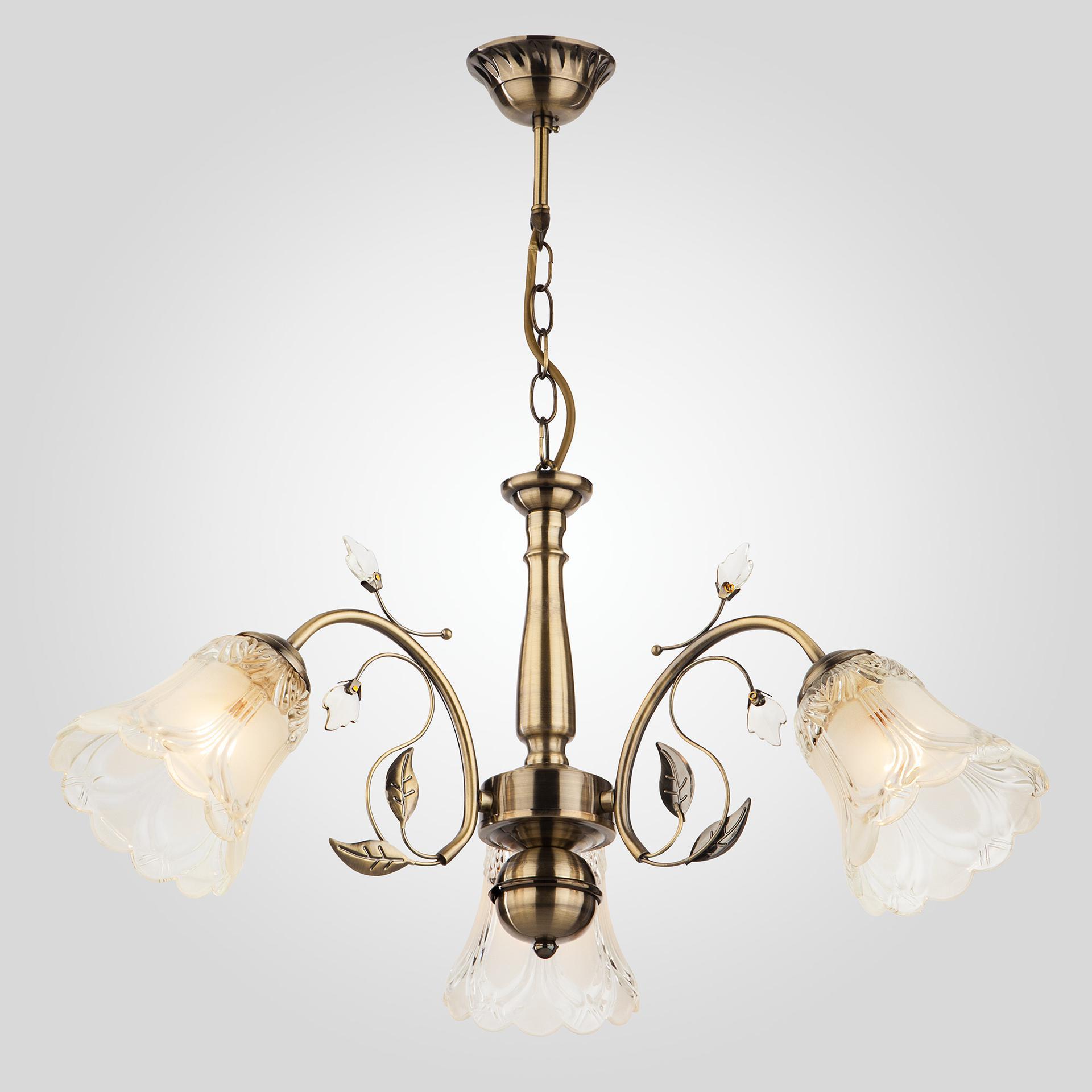 Люстра с плафонами в виде цветков 30009/3 античная бронза предназначена для создания основного освещения в современных и классических интерьерах, подходит для различных типов помещений: гостиная; спальня и рассчитана на площадь освещения 14 м². Роскошная люстра оснащена патронами с цоколем Е27, которые рассчитаны на максимальную мощность ламп 60 Вт. Люстра дополнена выразительными стеклянными плафонами в виде цветков. Арматура изготовлена из высококачественного металла с надежным защитным покрытием. В нашем интернет-магазине вы можете купить подвесную люстру по выгодной цене.