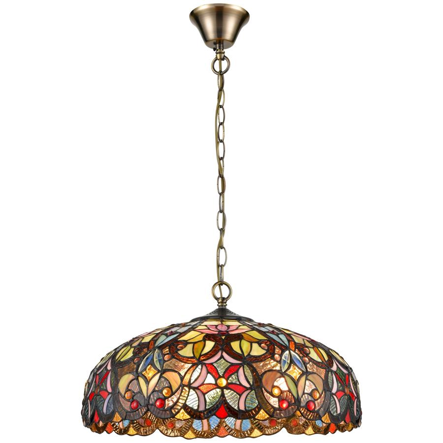 Данная модель входит в состав коллекции 825 и исполнена в стиле тиффани. Люстра имеет высоту 1070 мм и диаметр 457 мм. Работает при напряжении 220-240 V.