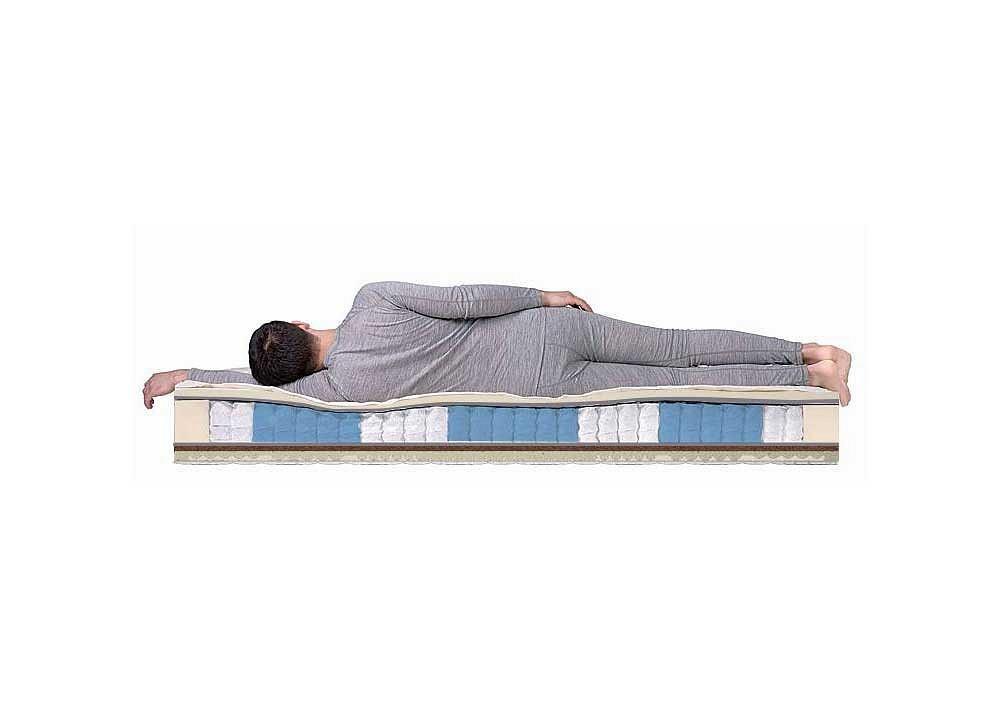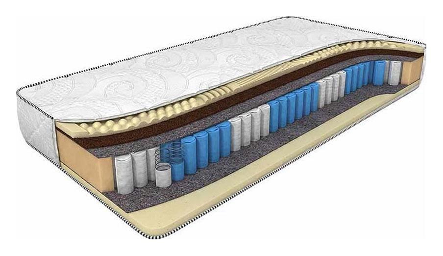 Сторона А – внешний наполнитель из семизонального натурального латекса обладает высокой анатомичностью и создаёт эффект микромассажа. Внутренний наполнитель – латексированная кокосовая койра - придаёт матрасу умеренную жёсткость. Сторона Б – наполнитель – семизональный натуральный латекс с эффектом массажа. Современный пятизональный пружинный блок Smart Zone усиливает эффект массажа и позволяет выдерживать нагрузку до 140 кг на одно спальное место. Изолирующий слой из термовойлока защищает наполнитель от контакта с металлом пружин, продлевая срок эксплуатации матраса. В комплект входит чехол Трикотаж Антистресс – приятная на ощупь трикотажная ткань успокаивающе действует на психику человека и легко пропускает воздух, позволяя телу свободно дышать.