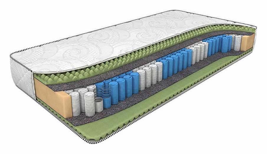 Наполнитель - Ergo Foam - высокоэластичная пена с массажным эффектом и высокой анатомичностью. Модель смонтирована на современном высокотехнологичном пружинном блоке Smart Zone, усиливающим массажный эффект и позволяющим выдерживать нагрузку до 150 кг на одно спальное место. Изолирующий слой из термовойлока защищает наполнитель от контакта с металлом пружин, продлевая срок эксплуатации матраса. В комплект входит чехол Трикотаж Антистресс - приятная на ощупь трикотажная ткань успокаивающе действует на психику человека и легко пропускает воздух, позволяя телу свободно дышать.