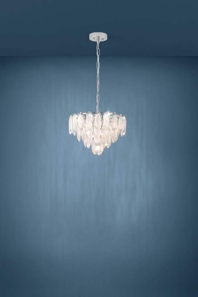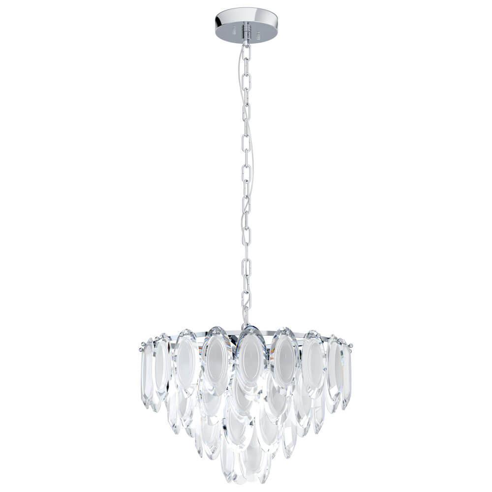 Превосходная модель 39721 от австрийской компании Eglo относится к коллекции Carvario и отлично подойдет для установки на потолок спальни, оформленной в стиле модерн. Подвесная люстра Eglo Carvario 39721 с конусными плафонами осветит помещение площадью 18.7 кв. м. Производитель Eglo рекомендует использовать для устройства лампы накаливания с цоколем E14 и мощностью 40 W. Прибор произведен с использованием материалов: стекло и сталь и может использоваться для натяжного потолка. Основным цветом товара является хромовый и прозрачный. Подвесная люстра 39721 продается по цене 59990 руб. Торопитесь сделать заказ в интернет-магазине SvetONe.