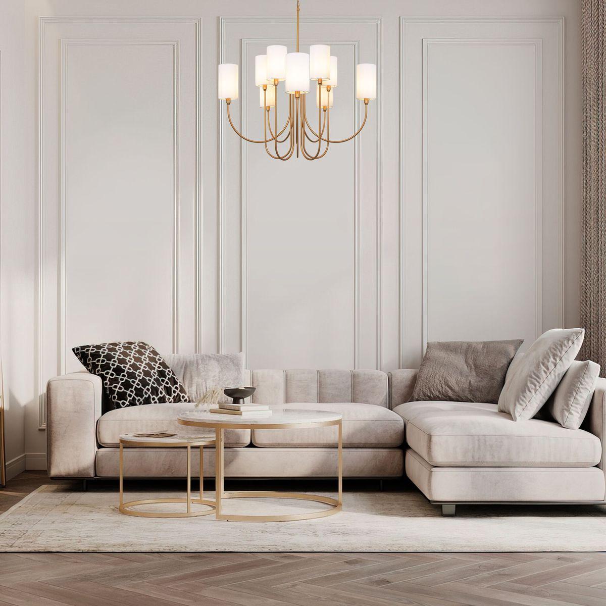 Прекрасная модель 60164/10 латунь от российской компании Eurosvet относится к коллекции Abbey и отлично подойдет для установки на потолок в гостиной, оформленной в стиле неоклассики. Подвесная люстра Eurosvet Abbey 60164/10 латунь с цилиндрическими плафонами осветит помещение площадью 18 кв. м. Производитель Eurosvet рекомендует использовать для устройства лампы накаливания с цоколем E14 и мощностью 40 W. Прибор произведен с использованием материалов: текстиль, металл и ткань и может использоваться для натяжного потолка. Основным цветом товара является белый и латунный. Подвесная люстра 60164/10 латунь продается по цене 49900 руб. Торопитесь сделать заказ в интернет-магазине SvetONe.