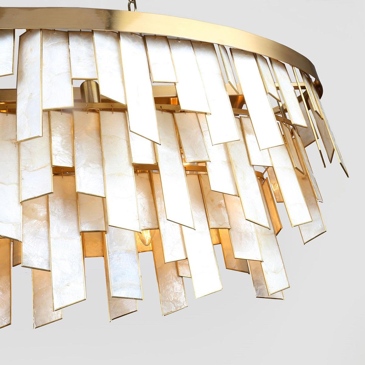 Изумительная модель 4199-15P от немецкой компании Favourite относится к коллекции Shally и отлично подойдет для установки на потолок в гостиной, оформленной в классическом стиле. Подвесная люстра Favourite Shally 4199-15P с нестандартными плафонами осветит помещение площадью 40 кв. м. Производитель Favourite рекомендует использовать для устройства лампы накаливания с цоколем E14 и мощностью 40 W. Прибор произведен с использованием материалов: ракушки и металл и может использоваться для натяжного потолка. Основным цветом товара является латунный и белый. Подвесная люстра 4199-15P продается по цене 129800 руб. Торопитесь сделать заказ в интернет-магазине SvetONe.