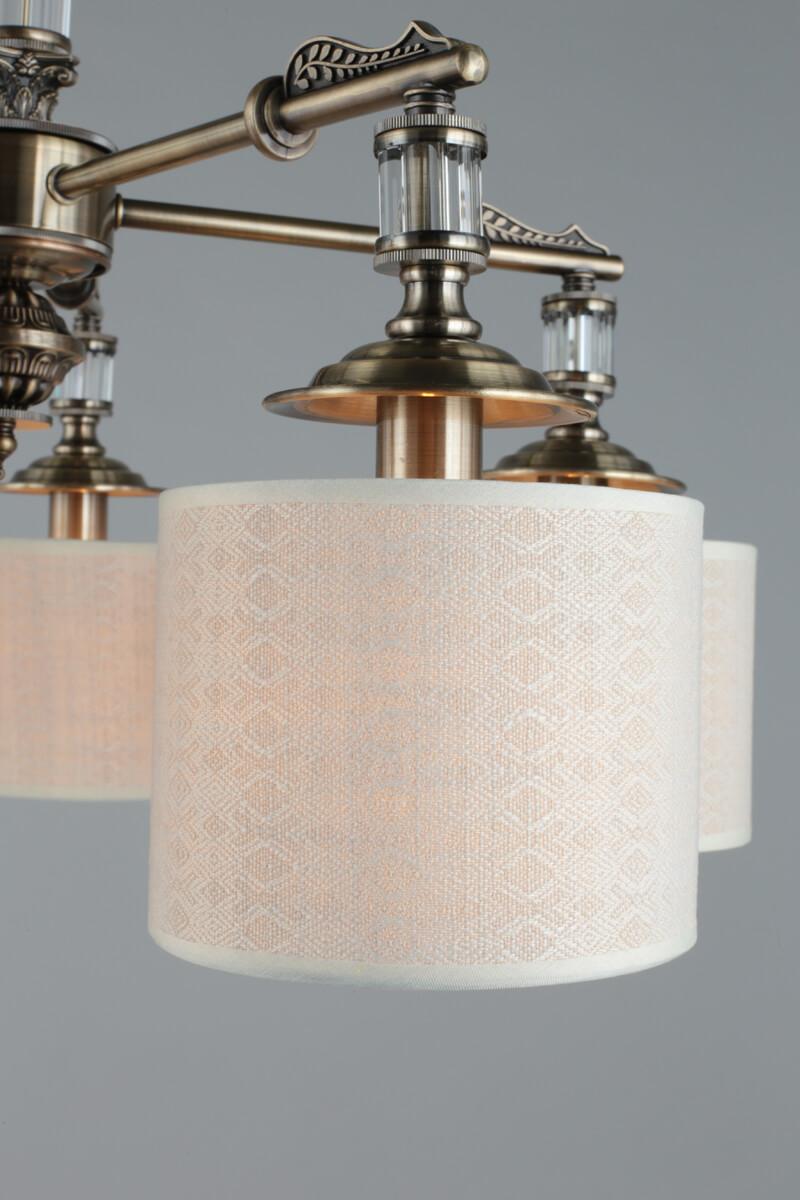 Изысканная модель OML-64307-05 от китайской компании Omnilux относится к коллекции Rovigo и отлично подойдет для установки на потолок спальни, оформленной в классическом стиле. Подвесная люстра Omnilux Rovigo OML-64307-05 с цилиндрическими плафонами осветит помещение площадью 12 кв. м. Производитель Omnilux рекомендует использовать для устройства лампы накаливания с цоколем E14 и мощностью 40 W. Прибор произведен с использованием материалов: текстиль, металл и ткань и может использоваться для натяжного потолка. Основным цветом товара является кремовый и бронзовый. Подвесная люстра OML-64307-05 продается по цене 15080 руб. Торопитесь сделать заказ в интернет-магазине SvetONe.