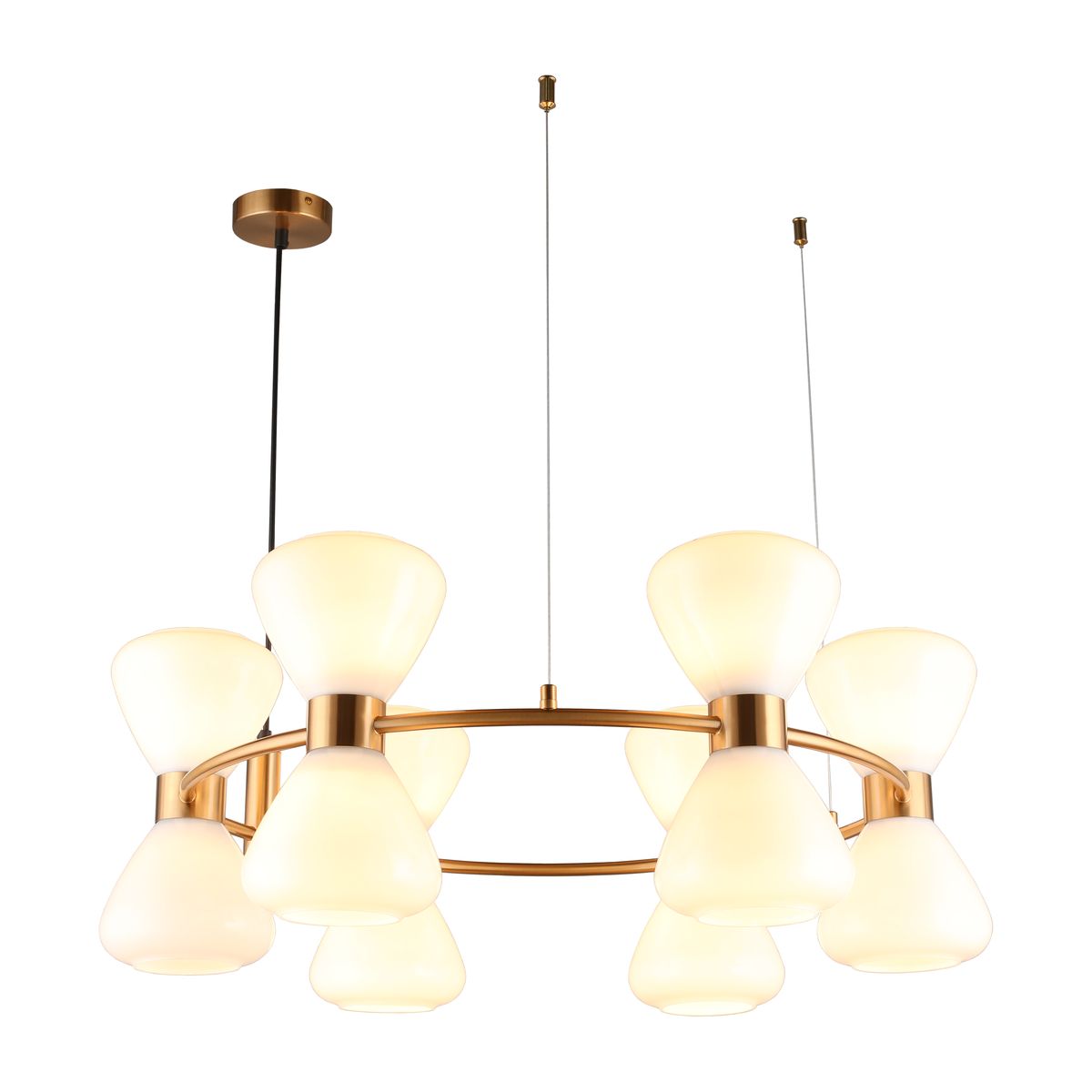 Элегантная модель OML-59603-12 от итальянской компании Omnilux относится к коллекции Trevasco и отлично подойдет для установки на потолок спальни, оформленной в стиле модерн. Подвесная люстра Omnilux Trevasco OML-59603-12 с плафонами-конусами осветит помещение площадью 24 кв. м. Производитель Omnilux рекомендует использовать для устройства лампы накаливания с цоколем E27 и мощностью 40 W. Прибор произведен с использованием материалов: стекло и металл и может использоваться для натяжного потолка. Основным цветом товара является белый и бронзовый. Подвесная люстра OML-59603-12 продается по цене 27060 руб. Торопитесь сделать заказ в интернет-магазине SvetONe.