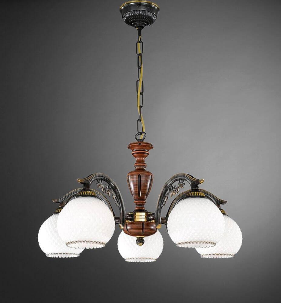 Несравненная модель L 8610/5 от итальянской компании Reccagni Angelo относится к коллекции Rosa 8610 и отлично подойдет для установки на потолок в гостиной, оформленной в стиле кантри. Подвесная люстра Reccagni Angelo L 8610/5 с круглыми плафонами осветит помещение площадью 15 кв. м. Производитель Reccagni Angelo рекомендует использовать для устройства лампы накаливания с цоколем E27 и мощностью 60 W. Прибор произведен с использованием материалов: дерево, латунь и стекло и может использоваться для натяжного потолка. Основным цветом товара является белый и бронзовый. Торопитесь сделать заказ в интернет-магазине SvetONe.