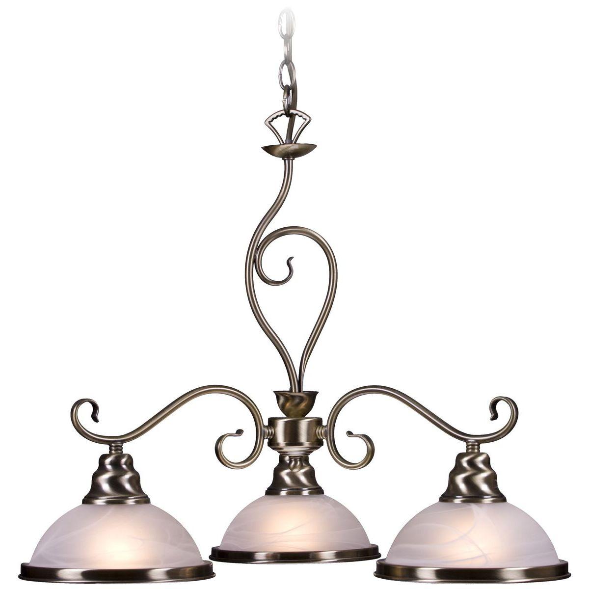 Неподражаемая модель 357-503-03 от итальянской компании Velante относится к коллекции 357 и отлично подойдет для установки на потолок кухни, оформленной в стиле ретро. Подвесная люстра Velante 357-503-03 с полукруглыми плафонами осветит помещение площадью 10 кв. м. Производитель Velante рекомендует использовать для устройства лампы накаливания с цоколем E27 и мощностью 60 W. Прибор произведен с использованием материалов: стекло и металл и может использоваться для натяжного потолка. Основным цветом товара является белый и бронзовый. Подвесная люстра 357-503-03 продается по цене 10650 руб. Торопитесь сделать заказ в интернет-магазине SvetONe.