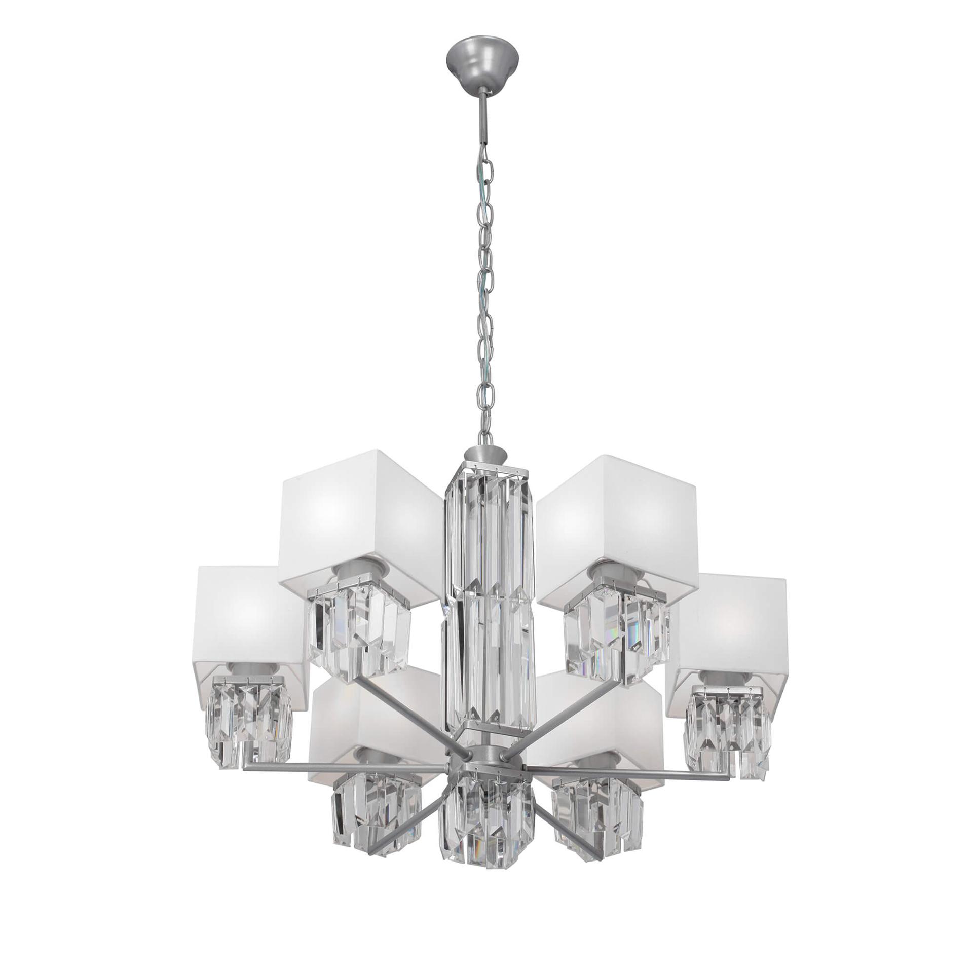 Утонченная модель V1856-9/6 от российской компании Vitaluce и отлично подойдет для установки на низкий потолок в гостиной, оформленной в стиле арт-деко. Подвесная люстра Vitaluce V1856-9/6 с квадратными плафонами осветит помещение площадью 18 кв. м. Производитель Vitaluce рекомендует использовать для устройства лампы накаливания с цоколем E14 и мощностью 40 W. Прибор произведен с использованием материалов: металл и ткань и может использоваться для натяжного потолка. Основным цветом товара является хромовый, серебристо-стальной и белый. Подвесная люстра V1856-9/6 продается по цене 16154 руб. Торопитесь сделать заказ в интернет-магазине SvetONe.