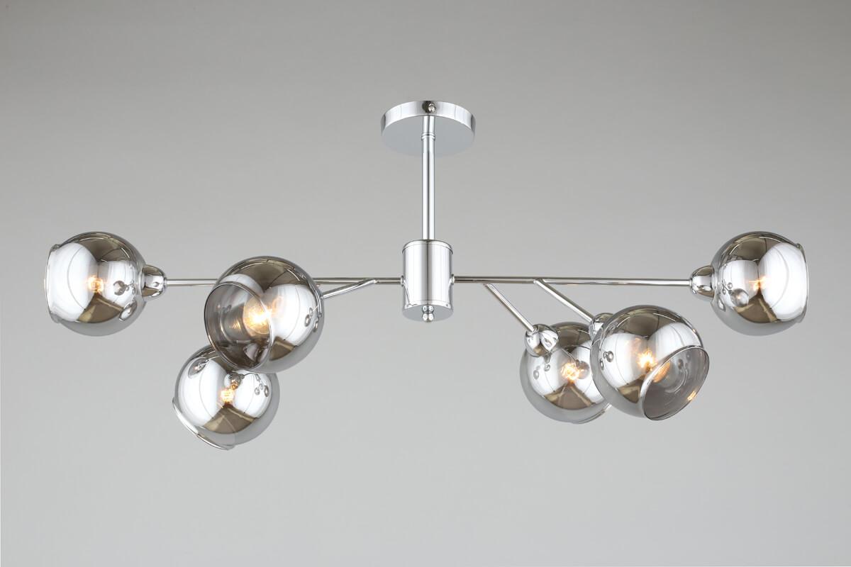 Изящная модель OML-94107-06 от китайской компании Omnilux относится к коллекции Ellera и отлично подойдет для установки на потолок в гостиной, оформленной в стиле лофт. Потолочная люстра Omnilux Ellera OML-94107-06 с плафонами в виде шаров осветит помещение площадью 13 кв. м. Производитель Omnilux рекомендует использовать для устройства лампы накаливания с цоколем E14 и мощностью 40 W. Прибор произведен с использованием материалов: стекло и металл и может использоваться для натяжного потолка. Основным цветом товара является дымчатый и серебристо-стальной. Торопитесь сделать заказ в интернет-магазине SvetONe.