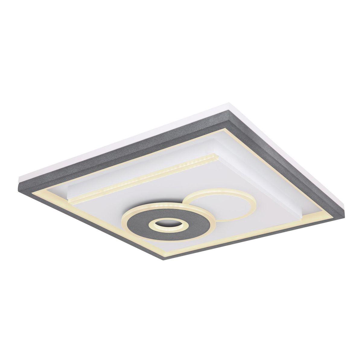 Изысканная модель 48453-52 от австрийской компании Globo относится к коллекции Sundi и отлично подойдет для установки на низкий потолок в гостиной, оформленной в стиле хай-тек. Осветительный элемент встроен в конструкцию и не требует приобретения дополнительных лампочек. Прибор произведен с использованием материалов: пластик, металл и акрил и может использоваться для натяжного потолка. В комплект поставки входит пульт дистанционного управления. Основным цветом товара является графитовый, белый и опаловый. Потолочный светодиодный светильник 48453-52 с диммером продается по цене 43770 руб. Торопитесь сделать заказ в интернет-магазине SvetONe.
