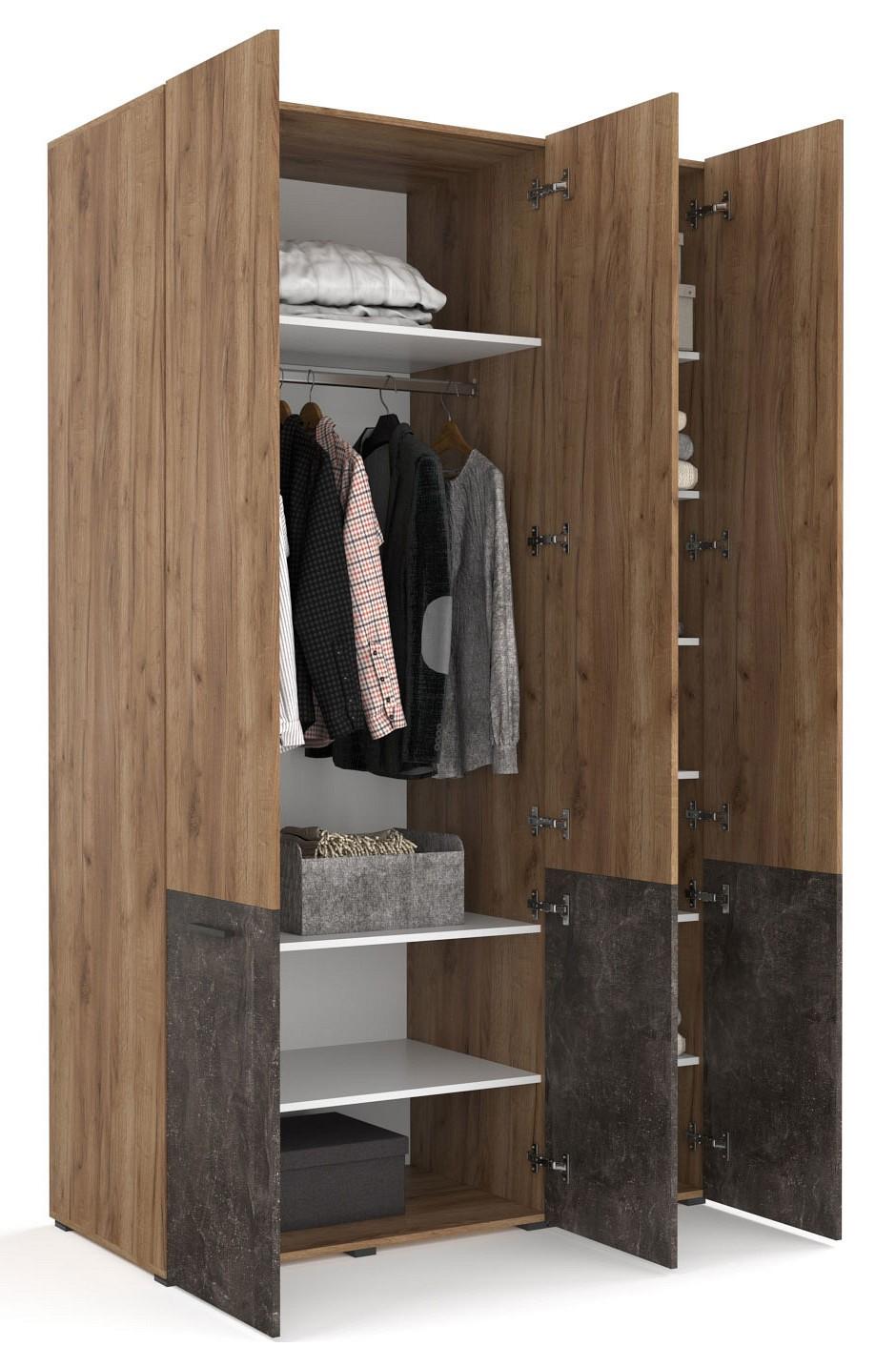 Шкаф 3-х дверный Брайтон бетон, дуб крафт, зеркальный