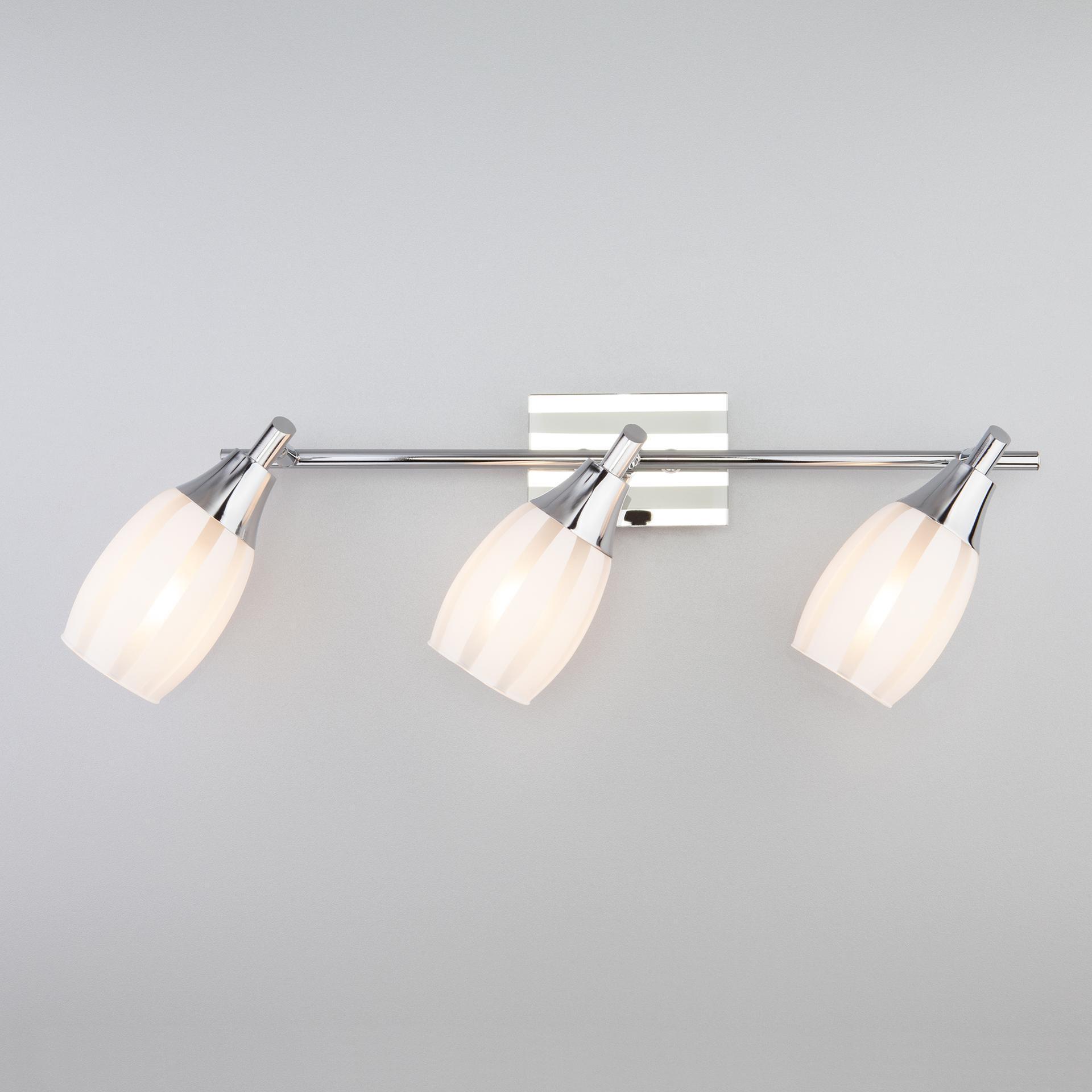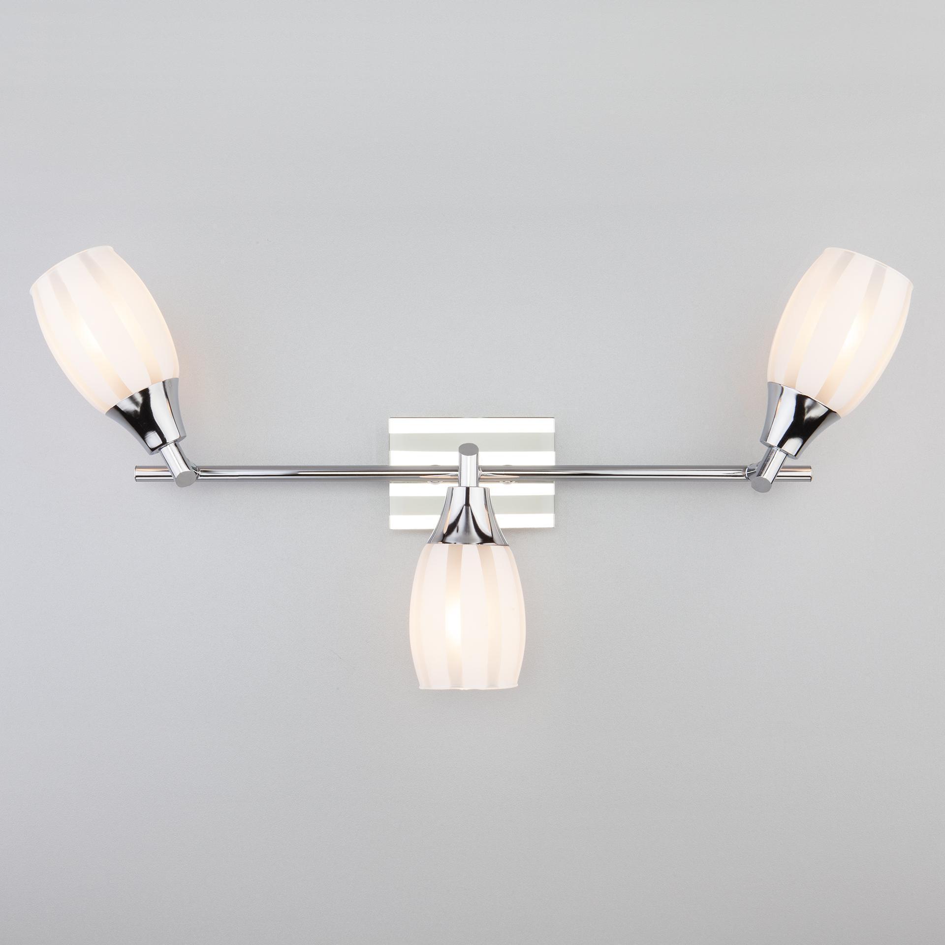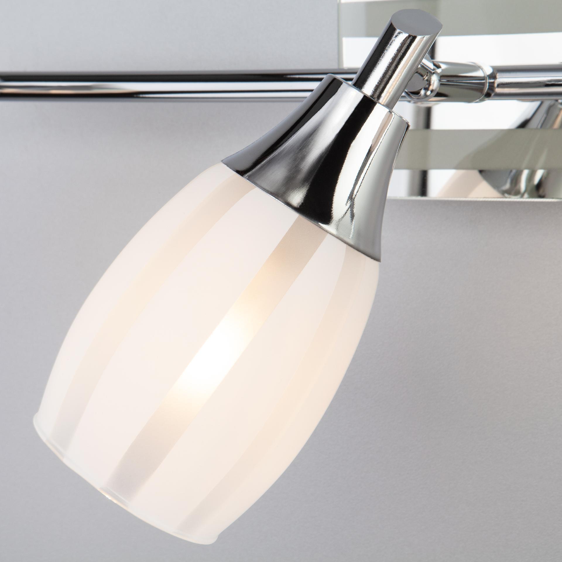 Спот с поворотными плафонами 20129/2 хром создаст качественное дополнительное освещение и станет эффектным дополнением к основному источнику света. Благодаря декоративному стеклянному плафону бра создает мягкое равномерное свечение, подходящее для комфортного чтения книг в вечернее время. В качестве источника света используются сменные лампы типа "Свеча" или "Шар" с цоколем E14. Патрон рассчитан на максимальную мощность ламп накаливания 40 Вт. Корпус светильника выполнен из высококачественного и прочного металла с надежным покрытием. Бра легко устанавливается при помощи крепежной планки, которая обеспечивает надежную фиксацию светильника на стене. В интернет-магазине Минимир вы можете купить настенный светильник с доставкой по Москве, Санкт-Петербургу и России.