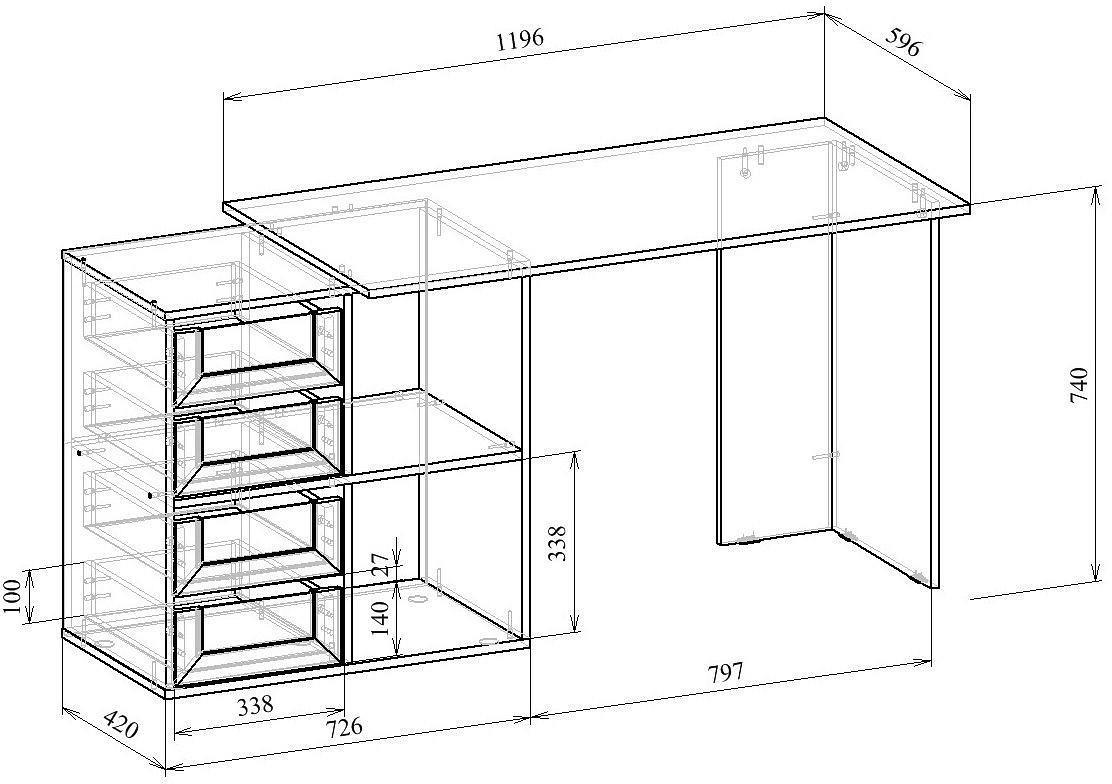 Учеба, работа или чтение – Стол письменный Прайм-47 MAS_STL-PRAIM-47-VB, созданный брендом 2735035, прекрасно подойдет для выполнения любых задач. Эта модель входит в серию «Прайм-47» и адаптирован под нужды каждого члена семьи. Благодаря оптимальным размерам изделия (Х1539Х740 мм) вы сможете с комфортом заниматься любимыми и важными делами. Базовая комплектация включает в себя непосредственно письменный стол, тумба: 1 полка, 4 ящика. Для изготовления корпуса был выбран ЛДСП Е1 в оттенке венге, завершает дизайн матовый верхний слой, гармонично сочетающийся со столешницей. Приобрести данную модель вы можете по привлекательной цене, равной 10999 руб.