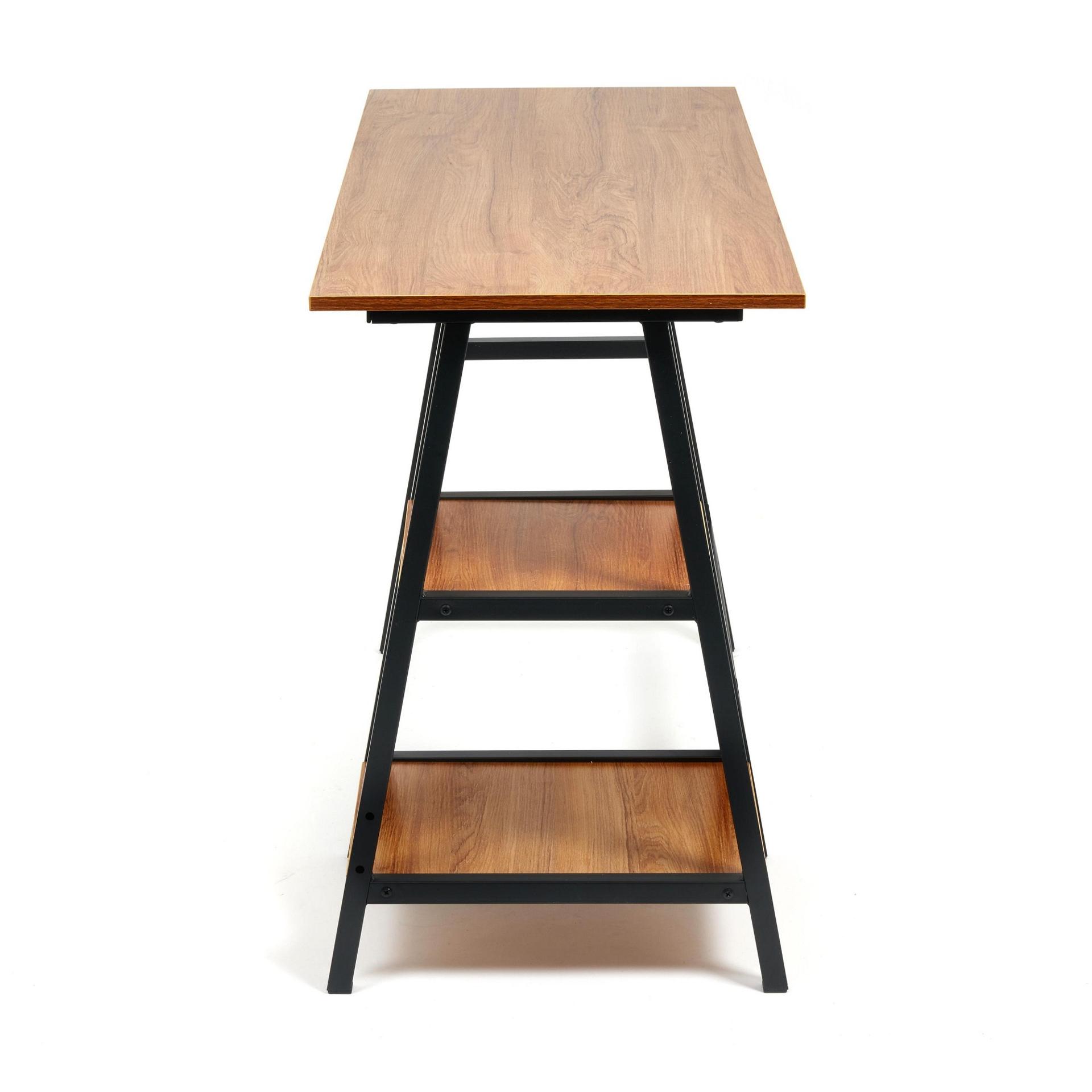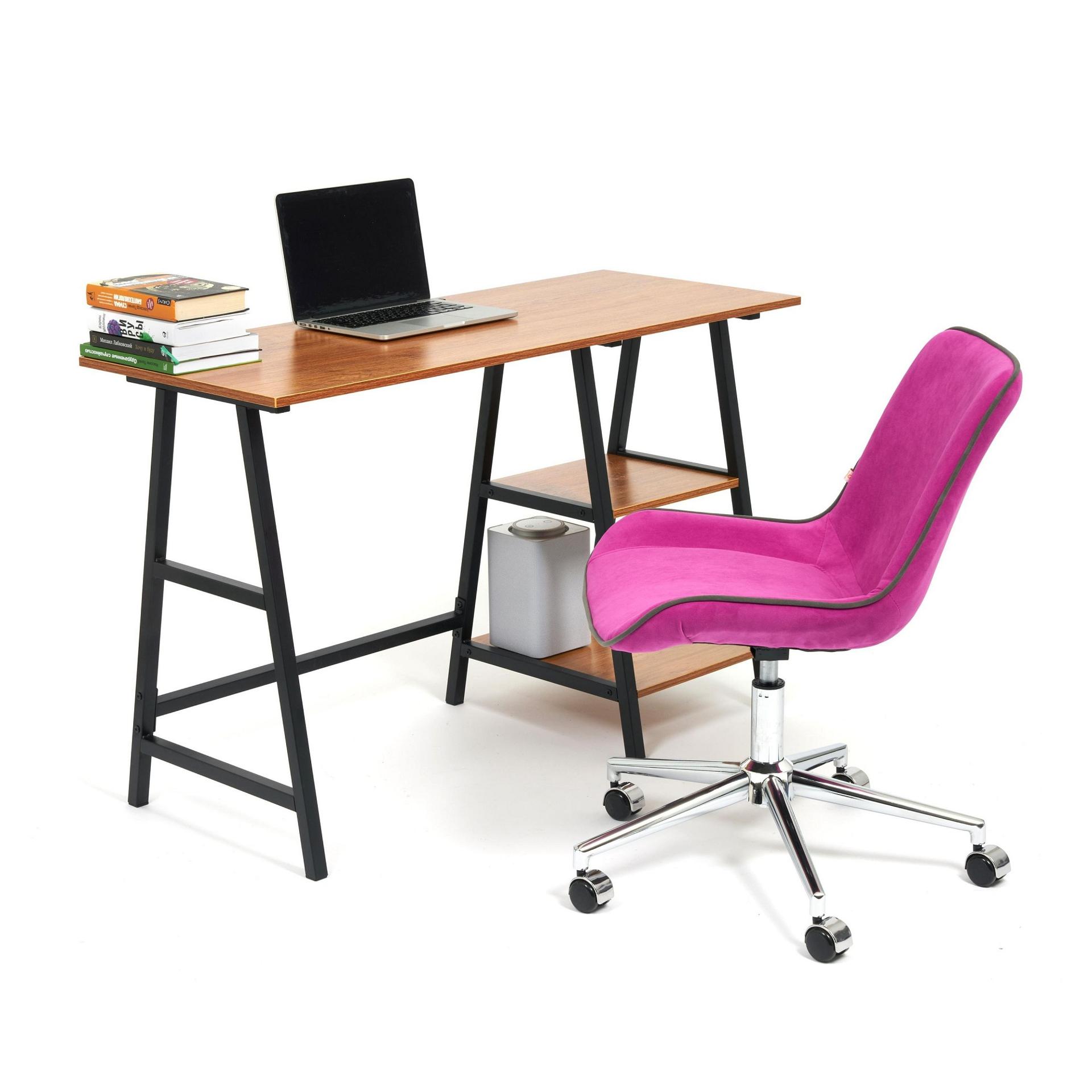Работа, учеба или чтение – Стол письменный WD-02 TET_14245, созданный брендом 1407241, прекрасно подойдет для выполнения любых задач. Эта модель входит в коллекцию «WD-02» и способен подстроиться под потребности каждого члена семьи. Благодаря оптимальным размерам изделия (Х1200Х750 мм) вы сможете с комфортом заниматься любимыми и важными делами. Базовая комплектация включает в себя непосредственно письменный стол, 2 полки. Для изготовления корпуса был выбран металл в оттенке черный, завершает дизайн матовый верхний слой, гармонично сочетающийся со столешницей. Приобрести данную модель вы можете по привлекательной цене, равной 6790 руб.