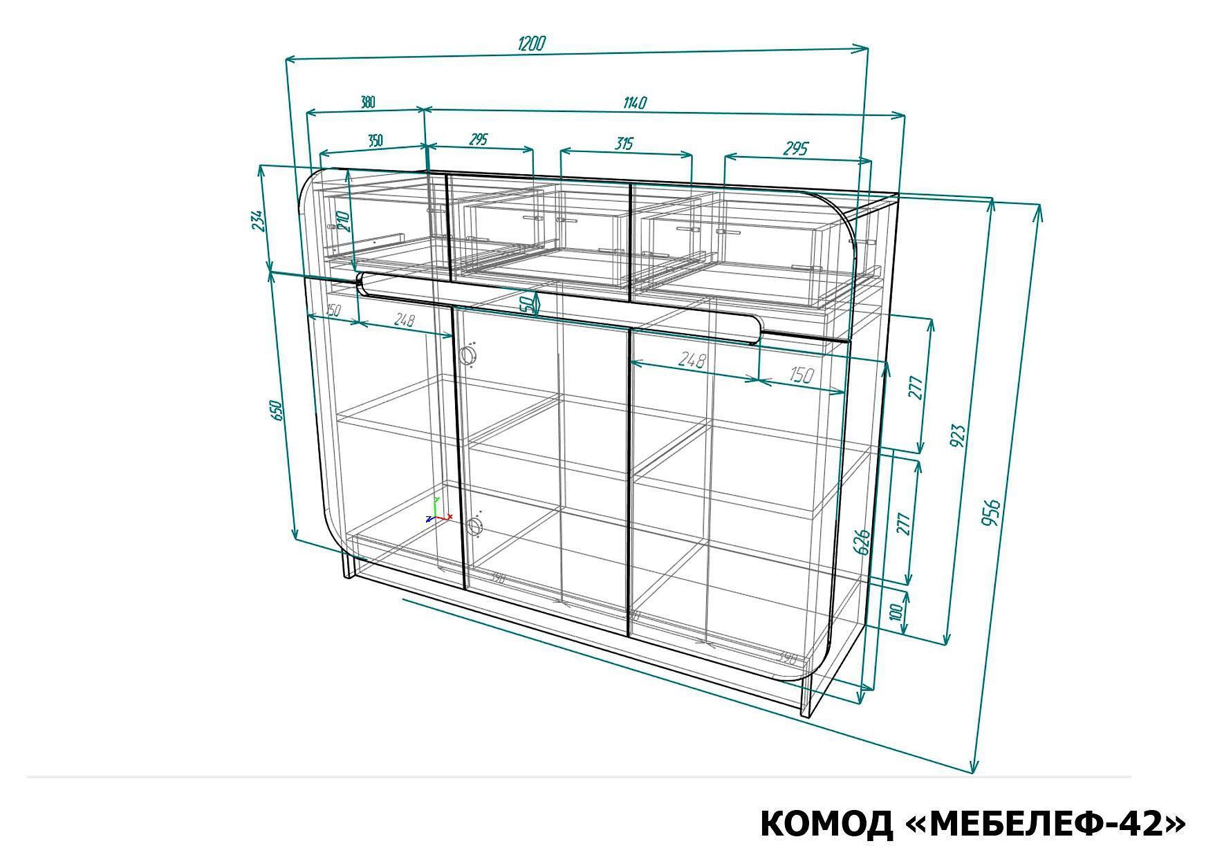 3 дверцы, 3 полки, 3 ящика