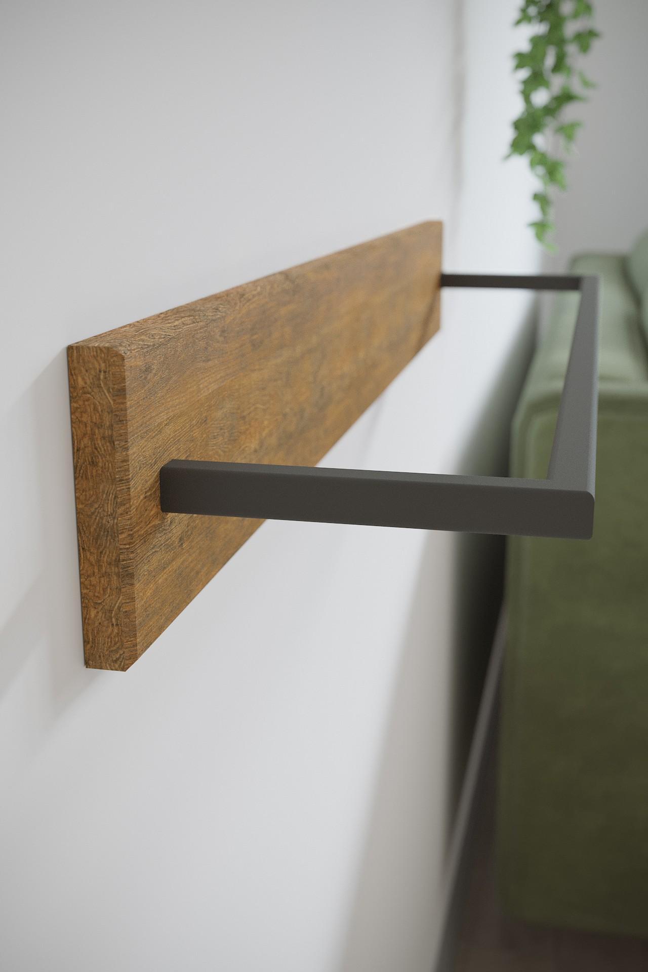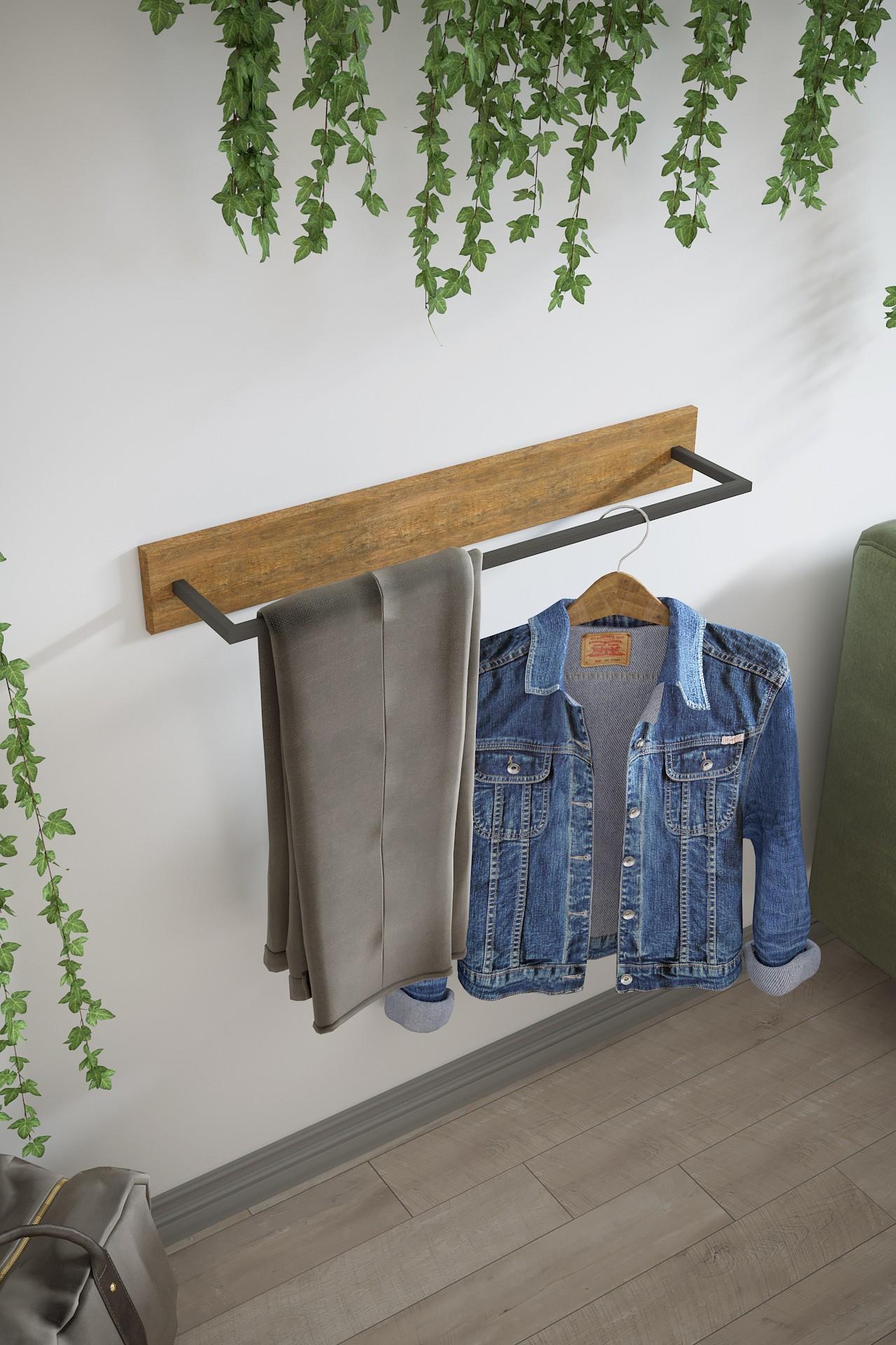 Настенная вешалка - эргономичный и практичный вариант навешивания и хранения вещей. За счет своей максимальной практичности ее можно разместить в любой комнате. Данная модель вешалки оснащена прочной металлической штангой, которая способствует компактному и удобному размещению одежды. Дизайнерским приемом является и то, что одну настенную вешалку можно комбинировать в интерьере с другой вешалкой из этой же серии другого размера. Вешалка выполнена из экологичного и прочного материала МДФ в сочетании с профильной трубой 15 мм.